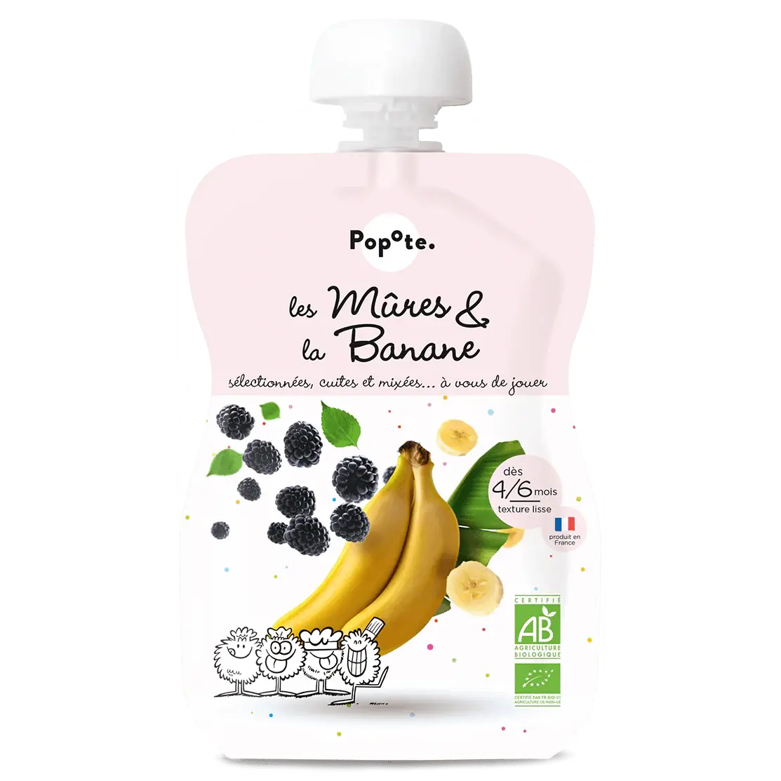 Pour marier le pep’s des mûres et la douceur onctueuse de la banane, nous les avons choisies bio et bien mûres — idéales pour éveiller les papilles de bébé dès 4/6 mois pendant la diversification.