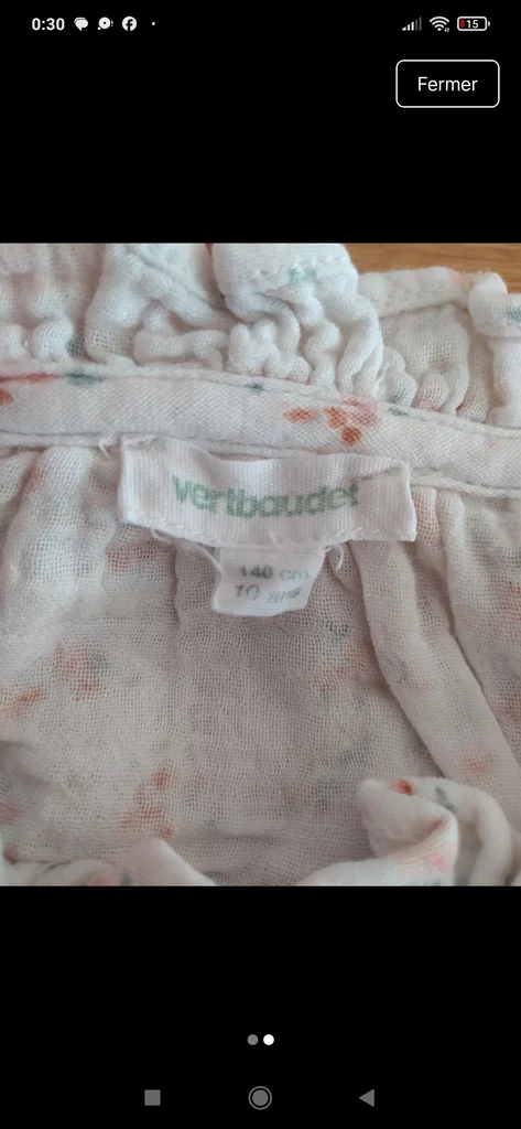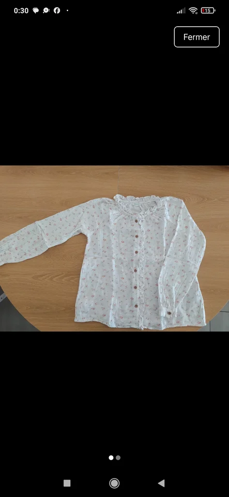 Chemise Marque : Vertbaudet Taille : 10 ans Couleur : blanche avec motif floraux