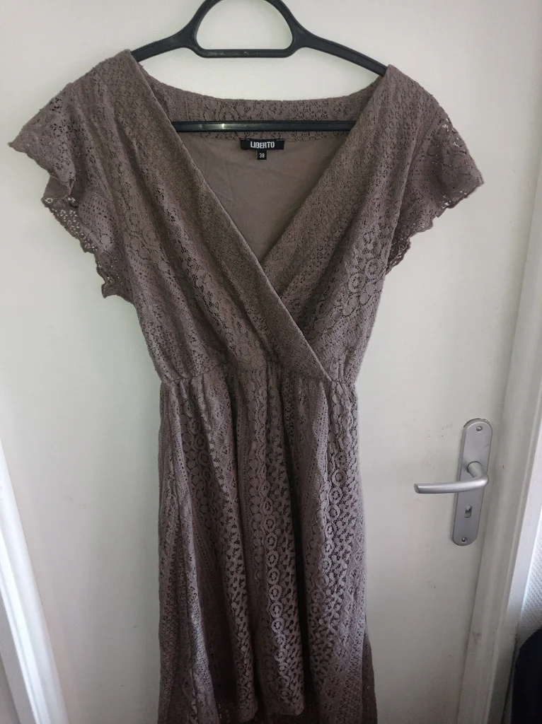 Superbe Robe en Dentelle Taupe Liberto - Coupe Cache-Cœur 🌸 Description : Coucou les filles ! ✨ Je vends cette magnifique robe de la marque Liberto, parfaite pour une cérémonie, une soirée ou une journée d'été élégante. Elle est très flatteuse et super agréable à porter ! 😊 ✨ Les détails qui font la différence : Matière : Entièrement recouverte d'une jolie dentelle florale délicate. Coupe : Décolleté cache-cœur (v-neck) très féminin et taille élastiquée pour marquer la silhouette sans serrer. ⏳ Doublure : Entièrement doublée (sauf aux manches) pour éviter toute transparence. 👗 Manches : Petites manches volantées en dentelle, très légères. Couleur : Un beau taupe / marron glacé, facile à accessoiriser ! 📐 Infos pratiques : Marque : Liberto Taille : 38 (M) État : Très bon état, portée pour une seule occasion. Elle attend sa nouvelle propriétaire pour briller à nouveau ! ✨ Envoi rapide et soigné comme toujours. 📦🚀 #Liberto #RobeDentelle #RobeCacheCoeur #ModeFemme #TenueDeSoiree #Rob [Description tronquée]