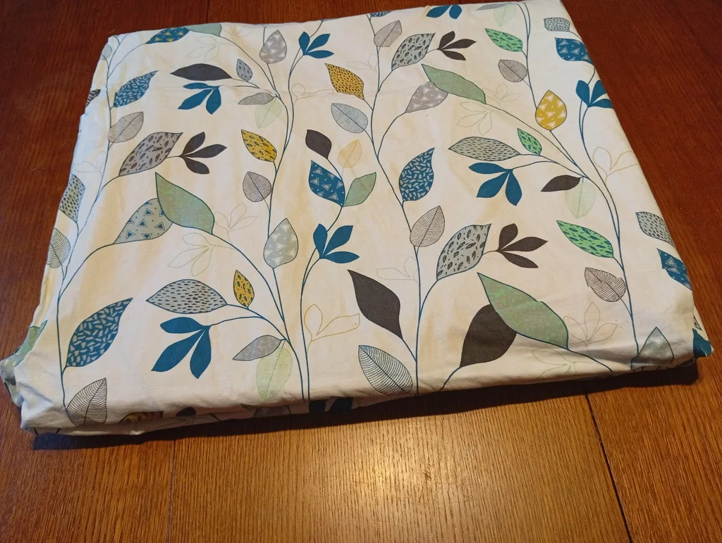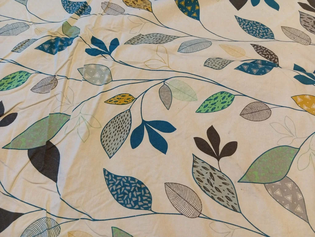 Housse de couette grand lit 2 M 20 large 2 M 10 de long dessus avec des feuilles plusieurs couleurs et dessous vert claire et crème déjà servie pas de tache pas de trou