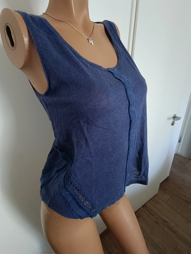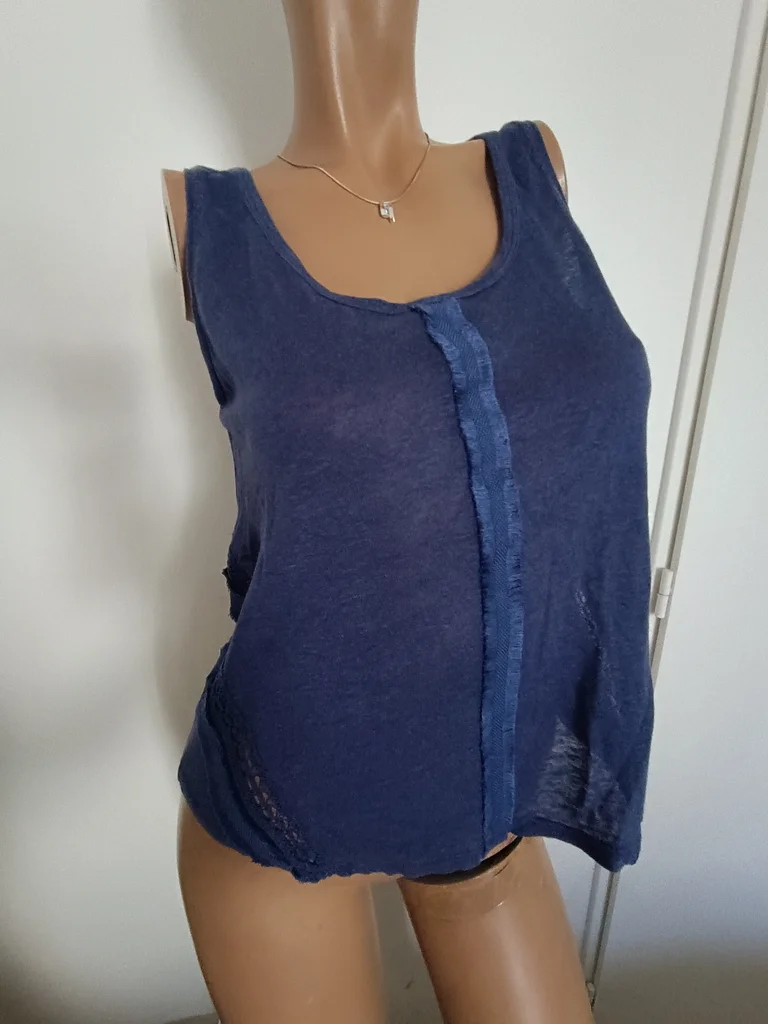 Joli top bleu en lin avec empiècements Taille 0 mais peut convenir facilement à 1 36 #mariol69110femme34 #mariol69110femme36