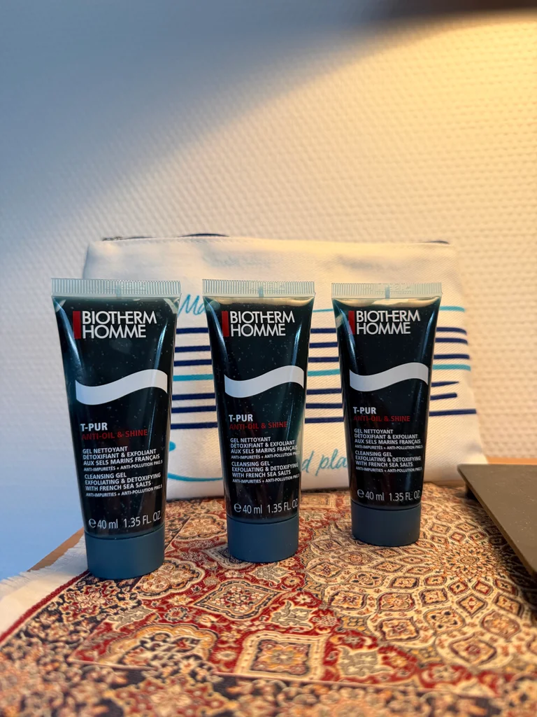 Trousse Biotherm avec 3 produits T-PUR homme gel nettoyant detoxifiant et exfoliant 40 ml Neuf
