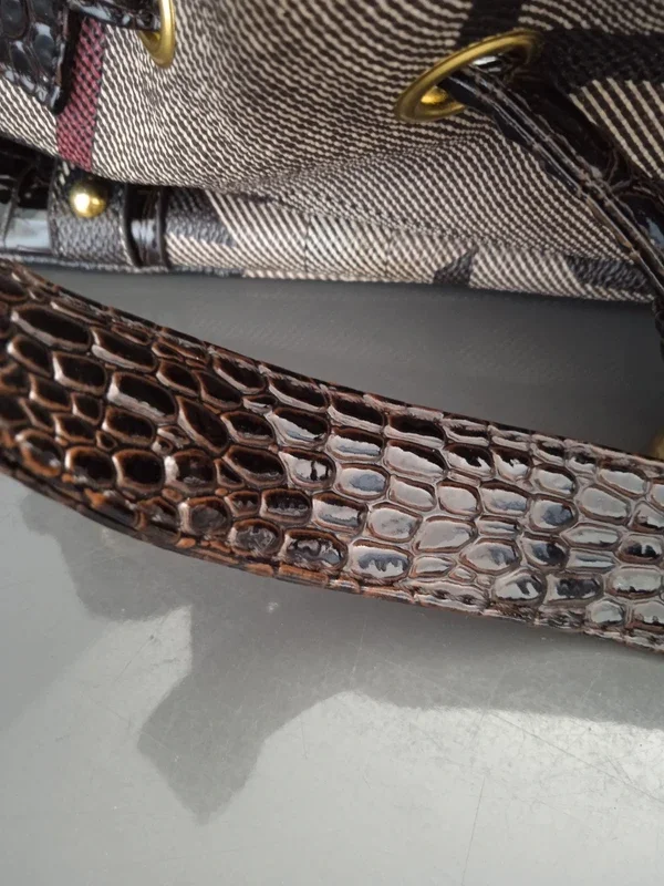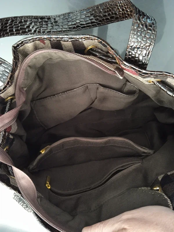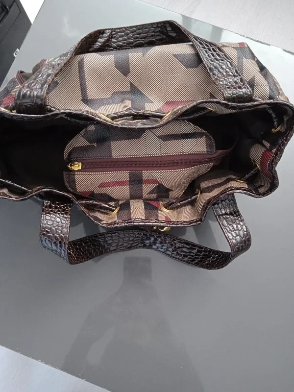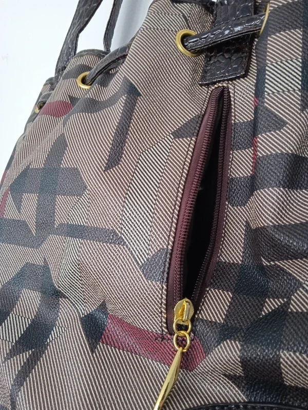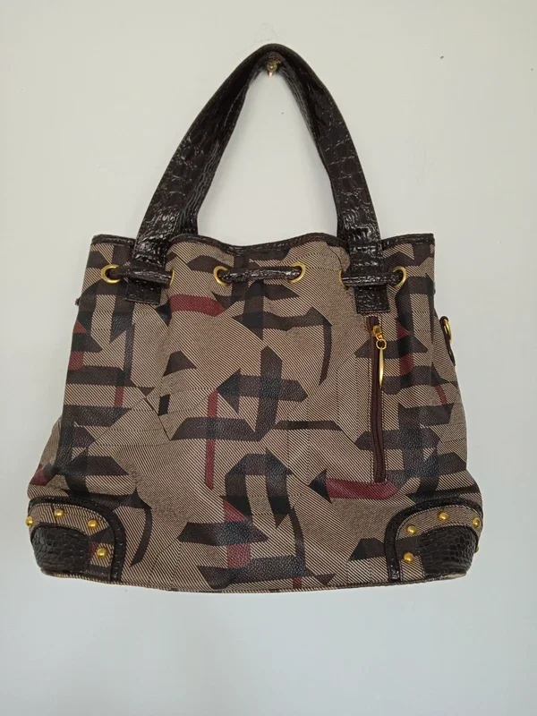 Sac à main à motifs, marron Bon état général, il n'y a plus la bandoulière donc se porte à la main et il est abimé en dessous sur un coté, la petite pochette intérieur du téléphone est décollé également Plusieurs poches #sacamain #sacamainmarron #sacamainfemme #sac #sacfemme #sacmarron #sacamainmarron