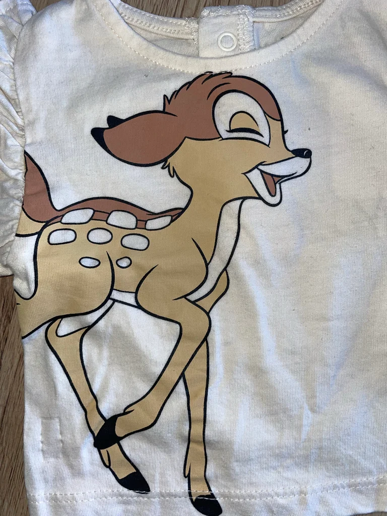 Je vends ce t-shirt Disney Bambi pour bébé de 1 mois. - Type de produit : T-shirt - Taille : 1 mois / 55 cm - Marque : Disney - Personnage : Bambi - Couleur : Crème N'hésitez pas à me contacter pour plus d'informations.