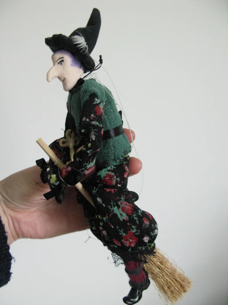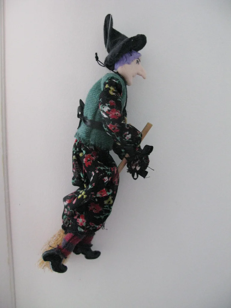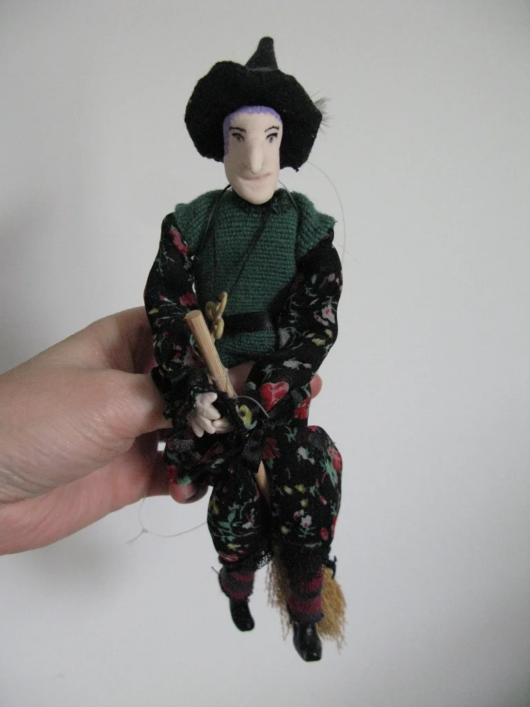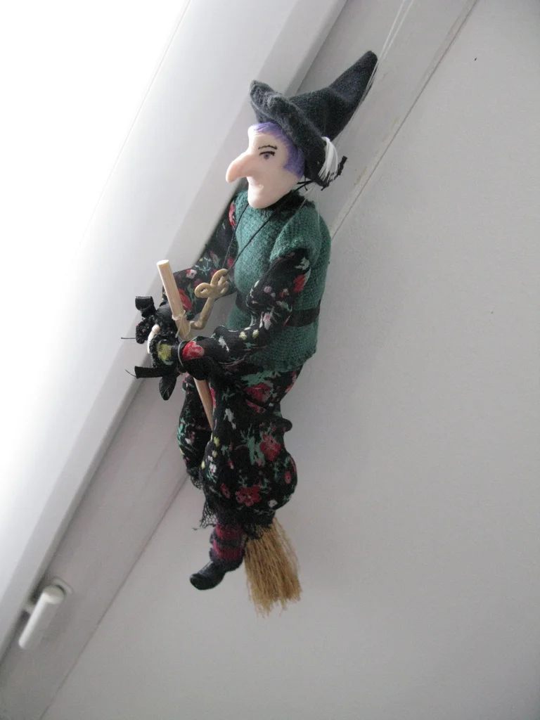 petite sorcière malicieuse, entièrement réalisée à la main Très jolie petite sorcière décorative, porte bonheur. La suspension est actuellement cassée Visage, pieds et mains en porcelaine froide Magdalena, de son petit nom, a les cheveux violet, et vole sur son balai. Entièrement réalisée à la main par mes soins, elle est unique. Symbolique : Elle vole sur son balai, prête à balayer les énergies stagnantes. Parfaite pour orner un autel, une bibliothèque ésotérique ou pour célébrer Samhain. elle mesure environ 23 cm de haut. N'hésitez pas pour toutes questions ! Décoration pour halloween ou toute l'année ! le prix n'est pas négociable car j'ai mis beaucoup de temps à la confectionner (de A à Z !!) mondial relay uniquement #sorciere #faitmain #artisanat #porcelainefroide #decoration #halloween #magie #pieceunique #portebonheur #wicca #esoterisme #autel #sorciere #witchcraft #faitmain #magieblanche #artisanat #portebonheur #spiritualite #pagan #samhain #magie #pieceunique