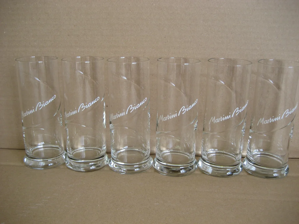 Lot de 6 ma gni fi ques verres " MARTINI BIANCO " , vintage, - verre tube à base épaisse ultra stable. - hauteur : 15,5 cm, diamètre base : 6,2 cm, diamètre supérieur : 5,7 cm. * Article NEUF, n'a jamais été utilisé, est resté dans son carton d'origine. Possibilté d'envoi.