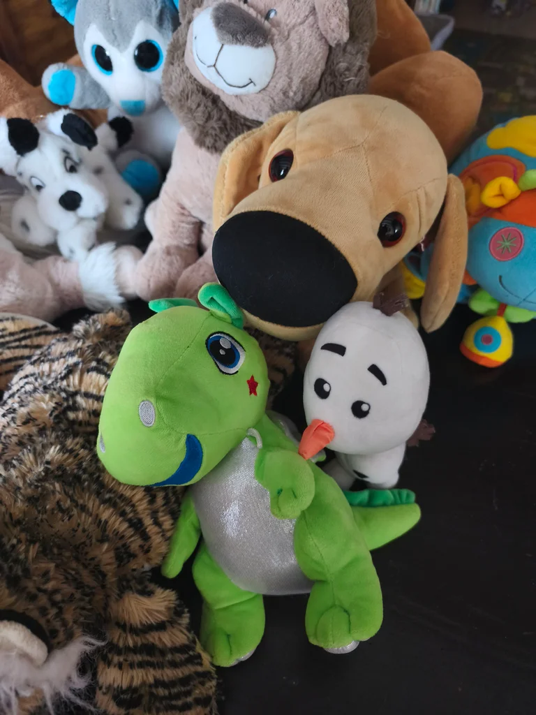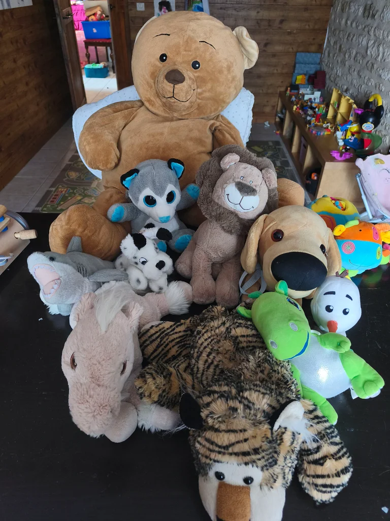 Je vends ce lot de peluches pour les tout-petits, parfait pour stimuler l'imagination et offrir des heures de câlins et de jeux doux. - Type de produit : Jouets d'éveil - Matière : Peluche - Âge recommandé : De 0 à 3 ans - Composition du lot : 1 grand ours beige, 1 petit chien gris et bleu, 1 petit chien blanc et noir, 1 tigre rayé, 1 requin, 1 dinosaure vert, 1 Olaf, un gros chien marron, un lion, un cheval qui Henni Très bon état. Un lot idéal pour les bébés et jeunes enfants ou les animaux ! N'hésitez pas à me contacter pour plus d'infos ou de photos.