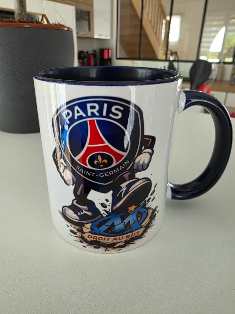 Avis aux supporters parisiens ! Je vends ce mug original à l'effigie du Paris Saint-Germain, avec un design très spécial : le logo du club prend vie sous forme de personnage "street-art" prêt à marquer ! Pourquoi vous allez l'adorer : Design unique : Un graphisme original et dynamique qui change des mugs classiques. État : Neuf (excellent état, aucune trace d'usure). Finition : Intérieur et anse bleu marine assortis aux couleurs du club. Qualité : Céramique brillante avec une impression haute définition des détails. C'est l'accessoire idéal pour le petit-déjeuner des jours de match ou pour afficher sa passion au bureau. 📦 Expédition ultra-soignée : Je sais que c'est fragile, donc le mug sera emballé avec une protection maximale pour arriver chez vous intact. N'hésitez pas à regarder mes autres annonces, j'ai toute une collection de mugs à vendre !
