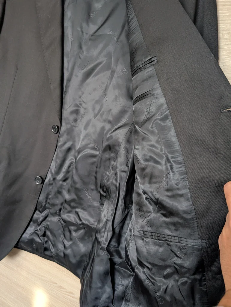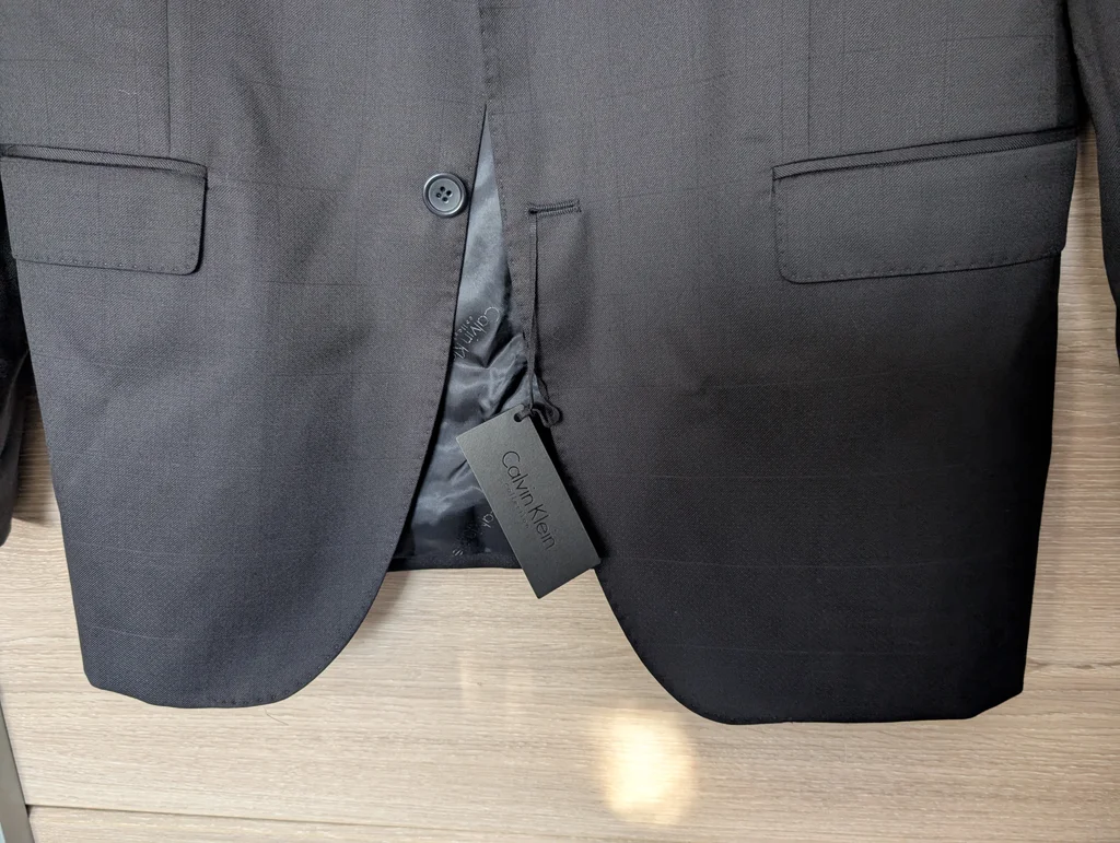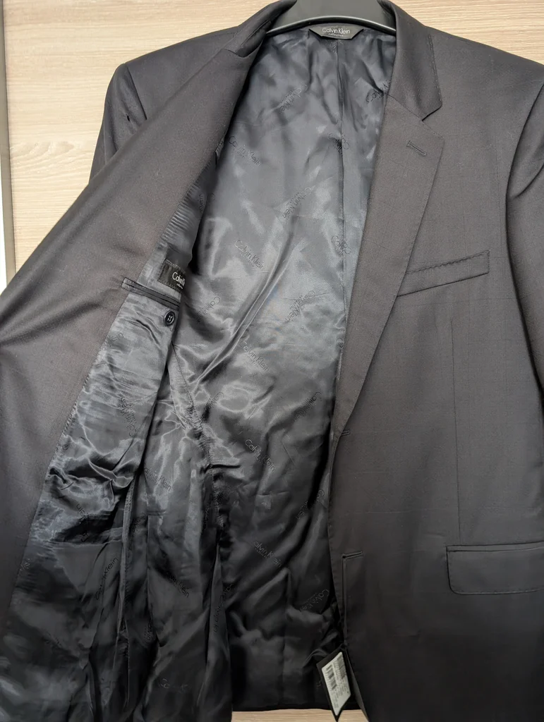 bonjour, vends cette très belle veste Calvin Klein, neuve et étiquetée taille 50 (Taille L) Attention, voir dernière photo, petit accroc à l'épaule droite (aucune idée d'ou cela vient, je ne l'ai jamais porté) achetée 120€ !! vends 40€ (comptez 10-15€ pour un travail de couturier)