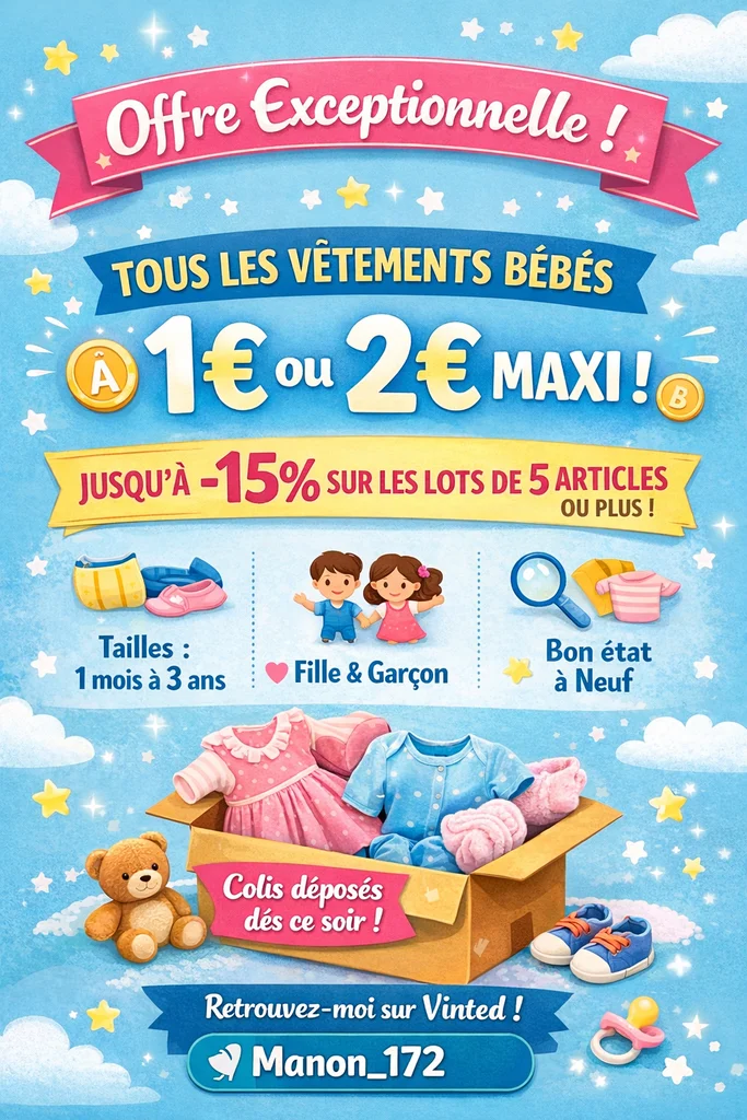 📏Toute taille 1 mois à 3 ans. 🔎De bon état à neuf. 📦Envoi des colis dès ce soir.