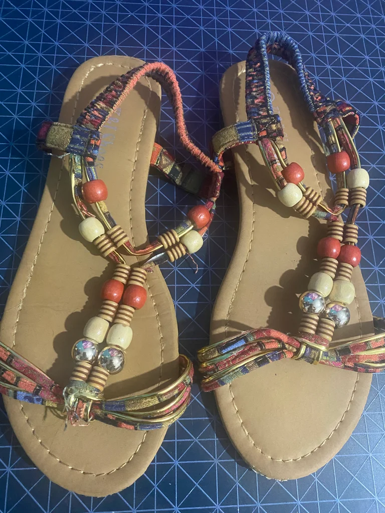 ✨ Sandales bijoux K&Shoes – Élégance bohème raffinée – T.38 ✨ Laissez-vous séduire par ces somptueuses sandales K&Shoes au design délicatement travaillé, véritables pièces “bijoux” pour sublimer vos tenues estivales 🌞 Leur jeu de tressage minutieux associé à des perles décoratives aux teintes chaleureuses apporte une touche d’élégance artisanale et un esprit bohème chic irrésistible. ✔️ Taille : 38 ✔️ Marque : K&Shoes ✔️ Très bel état ✔️ Finition soignée & détails raffinés ✔️ Fermeture ajustable pour un maintien parfait Idéales pour accompagner une robe fluide, un ensemble lin ou une tenue de vacances sophistiquée ✨