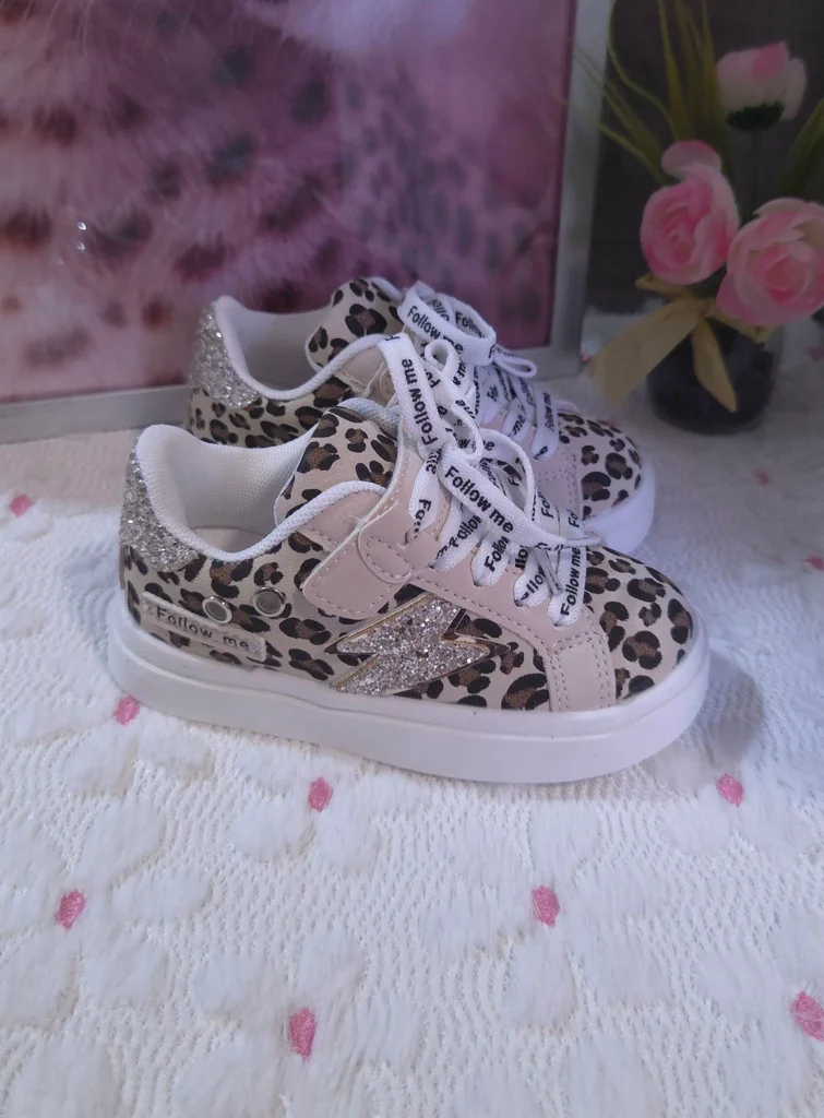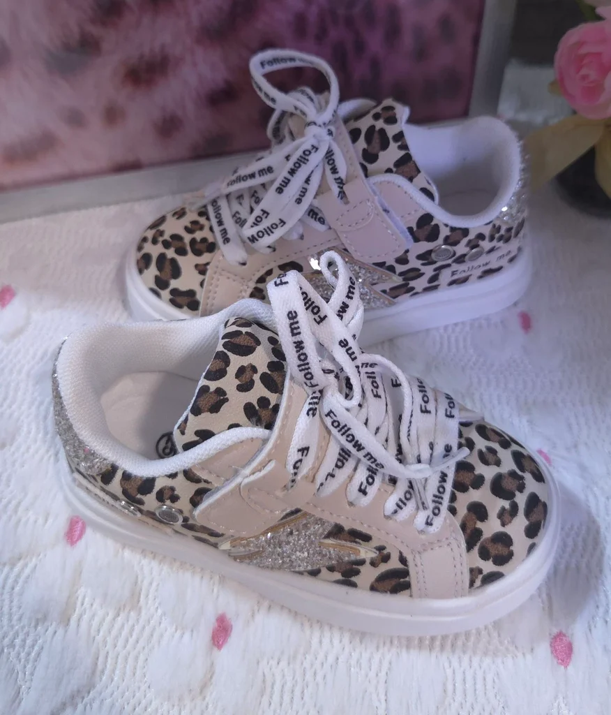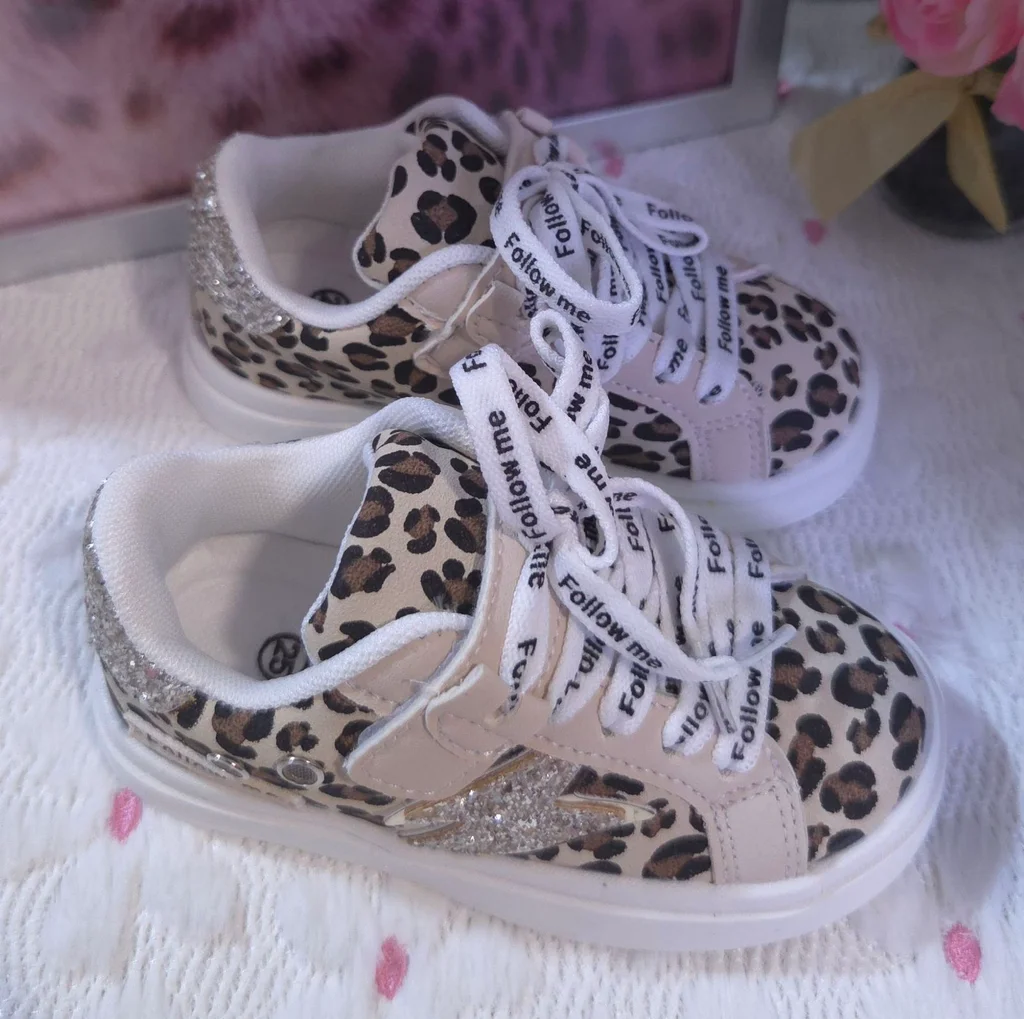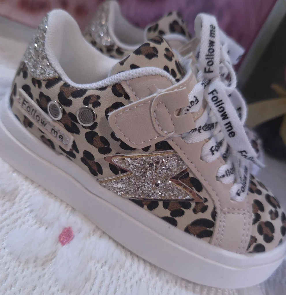 Baskets à lacet et scratch léopard. Taillent bien 25 Neuves
