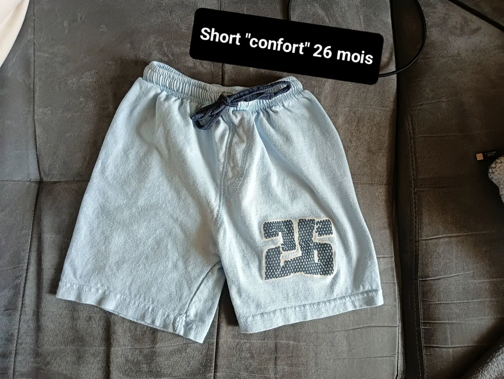 ▪️Short "Sport" garçon taille 26 mois▪️ - Il a été porté reste en bon état ( pas de tâches ni trous) 🔹Short très confortable et léger. 🔸Taille élastique et cordon de serrage à la taille 📏 Peut convenir au moins jusqu'à 3 ans , voir même un petit 4ans 🔹Couleur bleu ciel