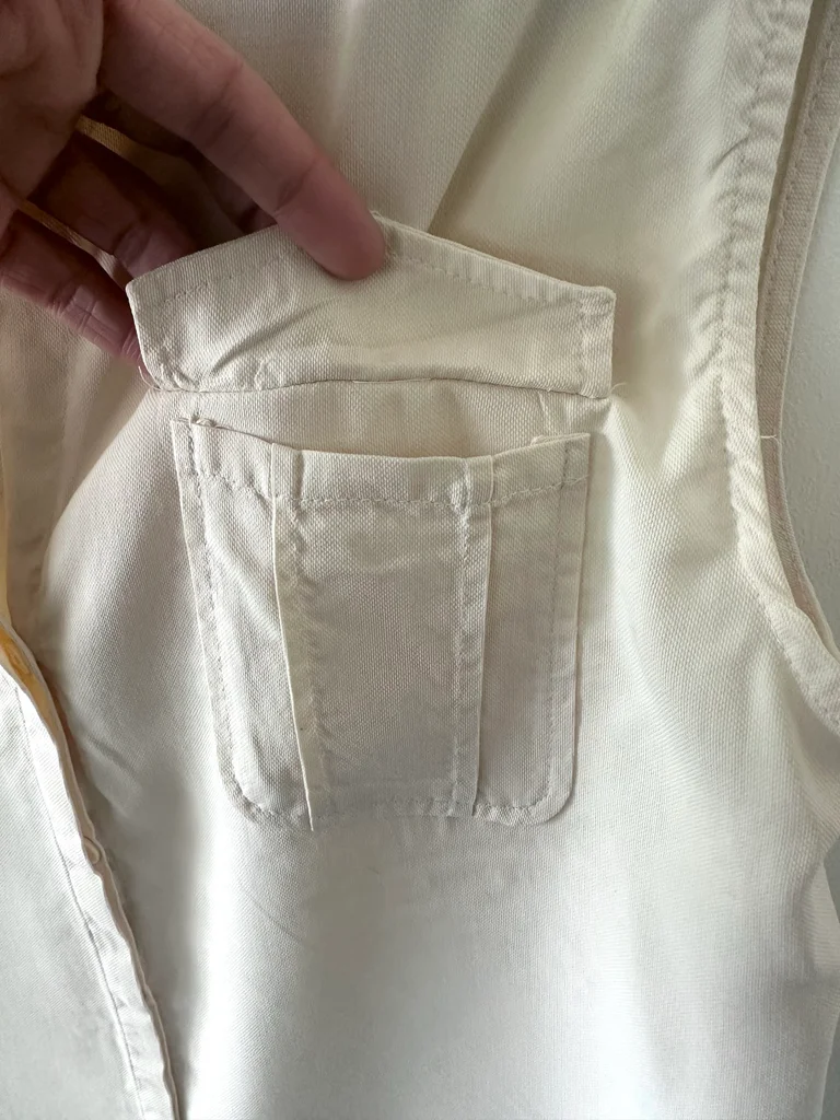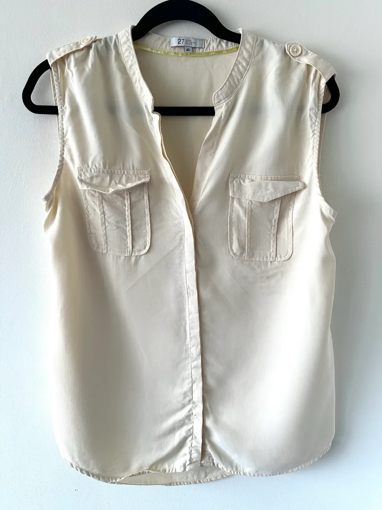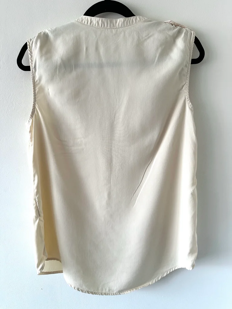 Blouse sans manches Quai de Seine beige en taille 40 Coupe fluide et légère, agréable à porter avec un style safari chic grâce à ses poches à l'avant et ses détails aux épaules Col ouvert avec fermeture boutonnée sur le devant, parfaite pour le printemps et l’été Peu portée, en très bon état