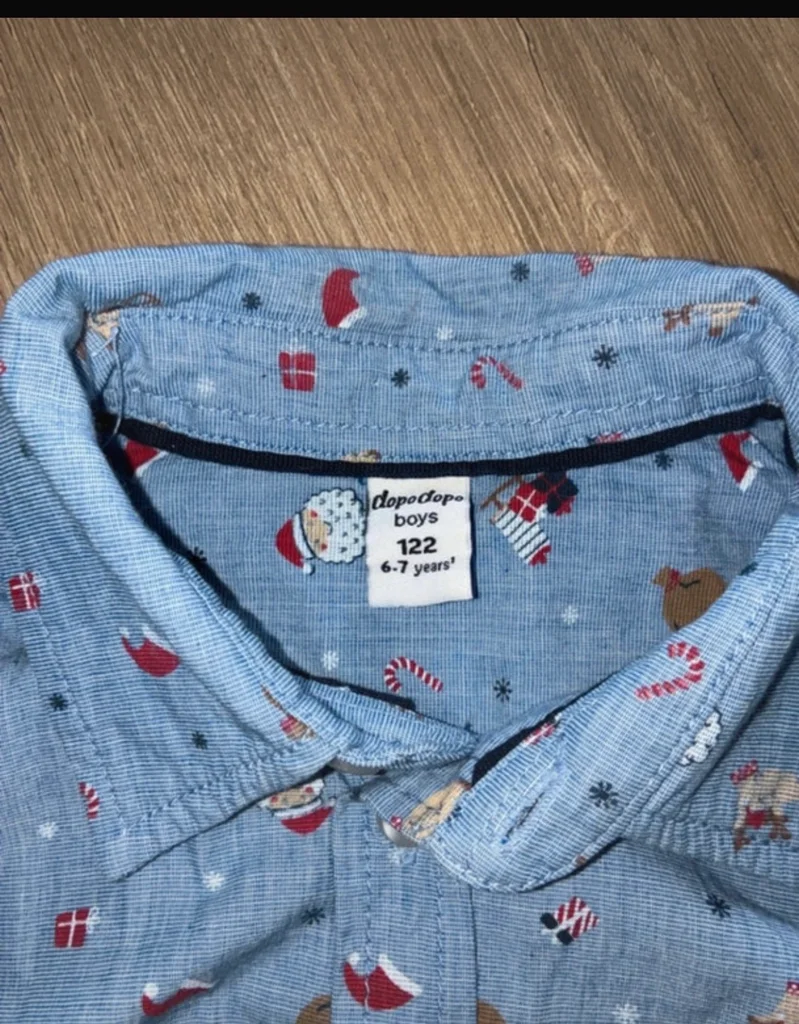 👔 Chemise garçon thème Noël – 6/7 ans 🎄 Jolie chemise à manches longues, idéale pour les fêtes de fin d’année, repas de famille ou photos de Noël 🎅✨ • Taille / âge : 6–7 ans • Matière : polyester • Marque : Dopo Dopo Boys • Couleur : bleu clair • Motifs : Noël (Père Noël, cadeaux, traîneaux, etc.) • Fermeture boutonnée ✨ Très bon état / peu portée. 📏 Mesures sur demande. 📦 Envoi rapide et soigné. 💬 N’hésitez pas si vous avez des questions !
