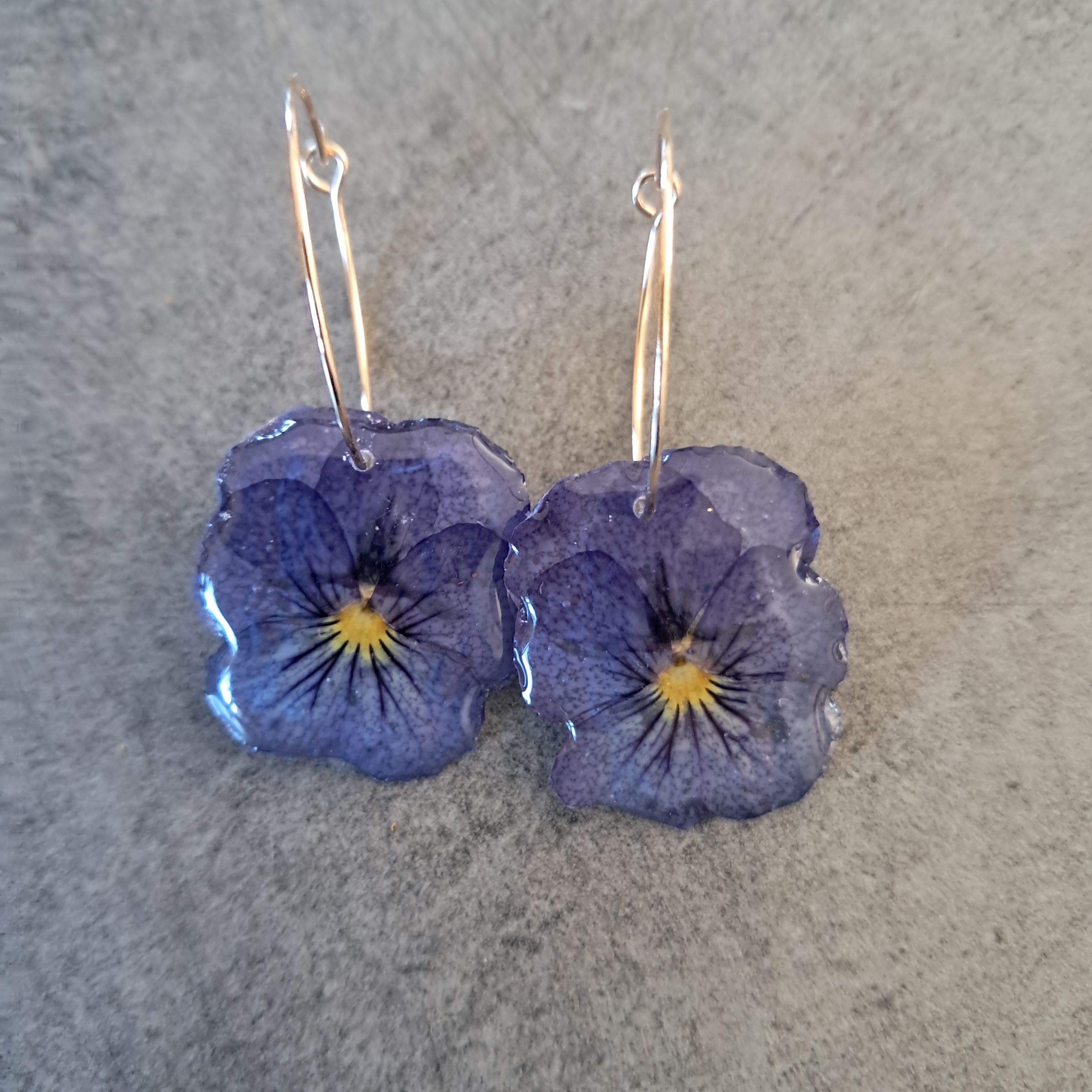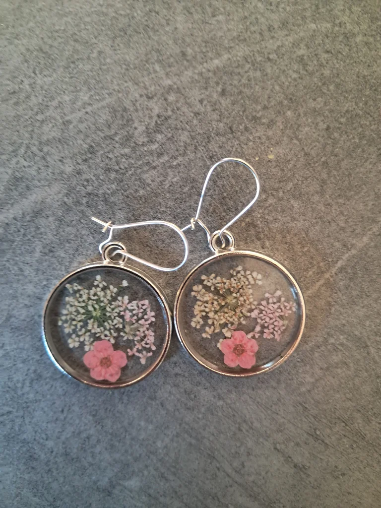 Boucle d oreille en résine et fleurs naturelles Diamètre 2,5 cm fait main