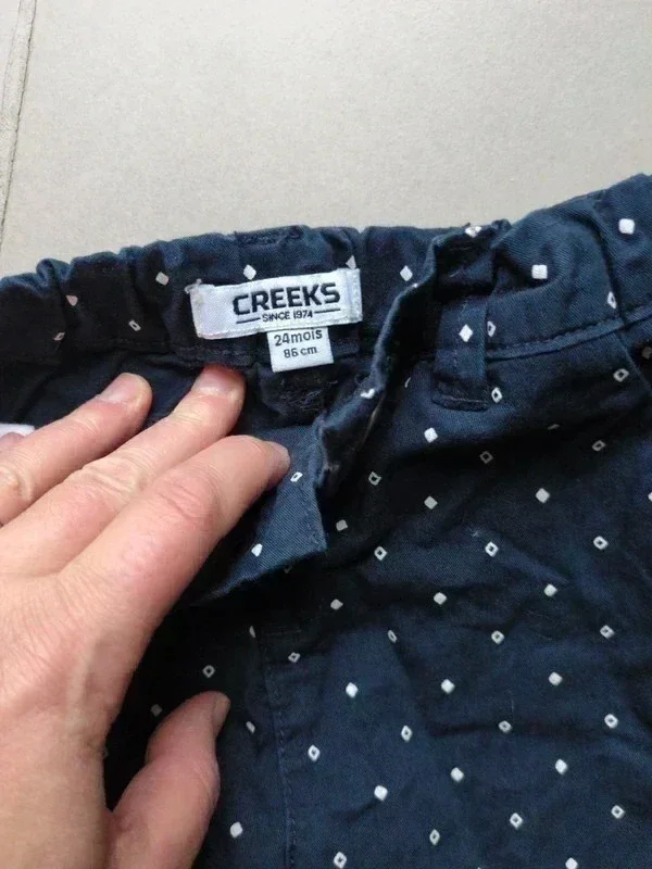Adorable petit short Creeks bleu marine à pois blanc, Se ferme avec une pression 2 poches de chaque côté, Très bon état. Dressing trié: #fifi8819vêtementsfilles Envoi rapide et soigné, #creeksfille #shorts #24mois #fille #estival #été #creeks #lookdetendu