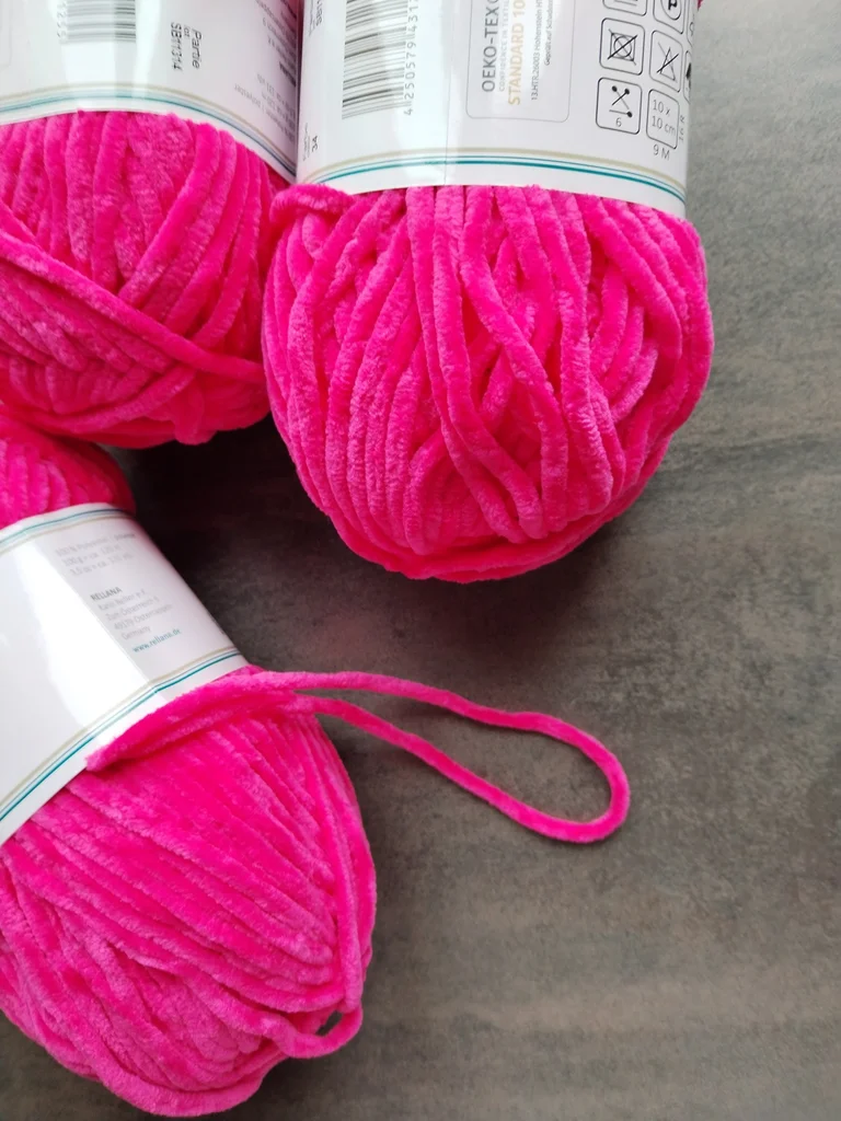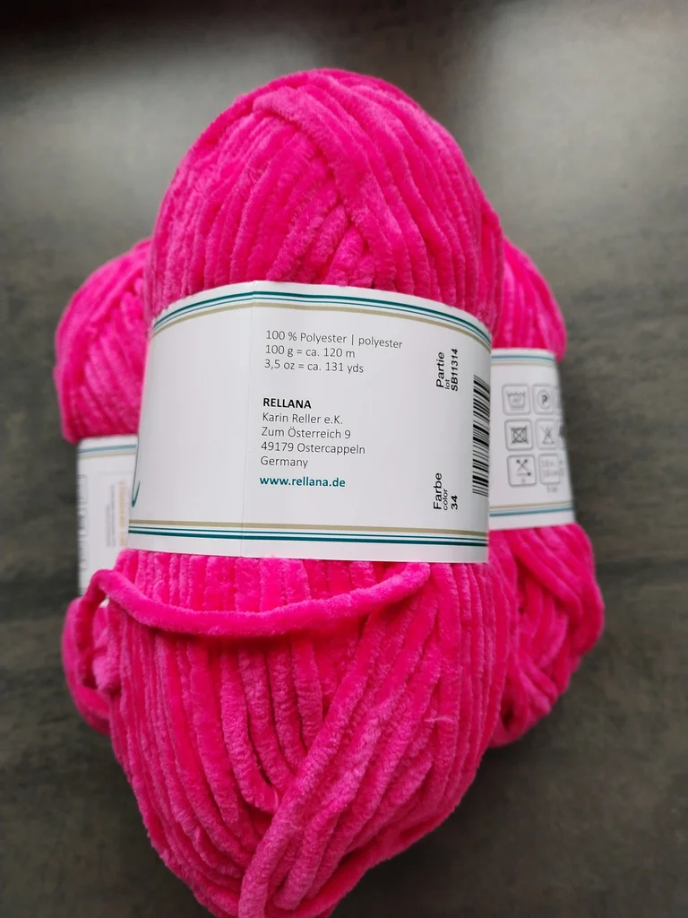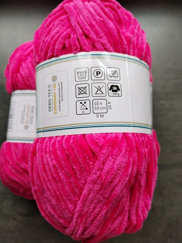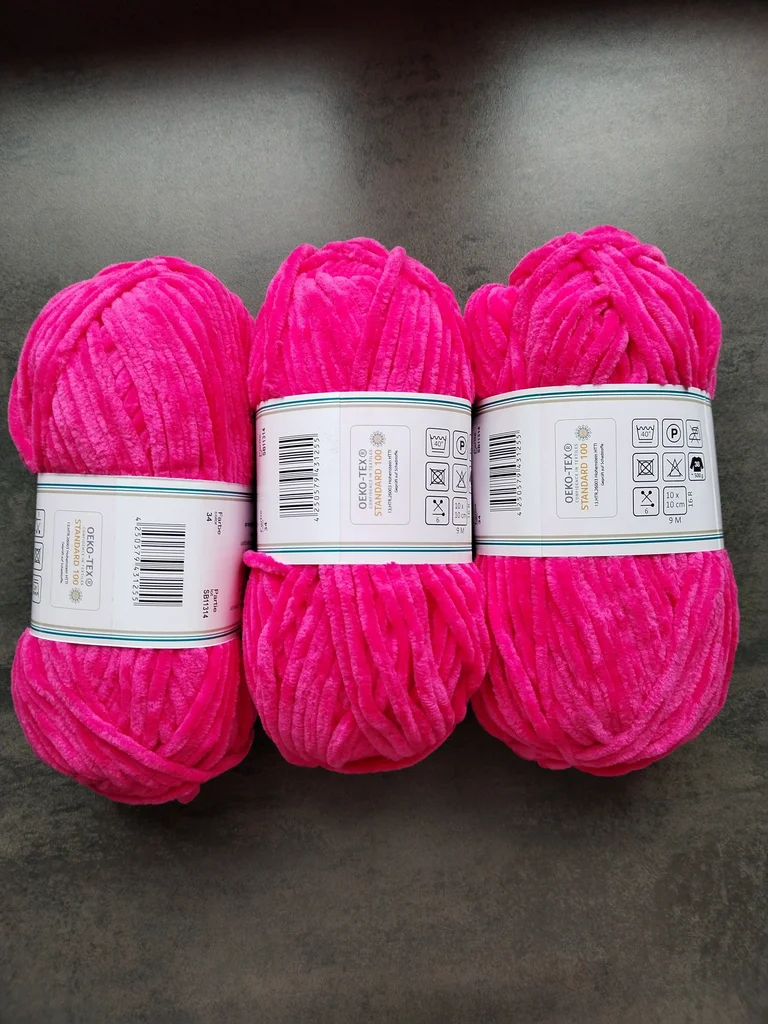 Lot de 3 pelotes de Laine chenille /velours. Idéal pour des créations douces comme des amigurumis, des coussins doudous, des couvertures pour bébé ou des accessoires cocooning. Type : Laine chenille / velours (très douce au toucher). Couleur : Rose vif / Néon (Coloris 34). Composition : 100 % Polyester. Poids/Longueur : 100g par pelote (soit environ 120m par pelote / 360m au total). État : Comme Neuf, jamais utilisé avec bagues d’origine. Lot indissociable : Même bain de teinture (Partie SB11314) pour un rendu parfaitement uniforme. Entretien : Lavable à 40°C. Conseil crochet/aiguilles : Taille 6 mm. Certifié OEKO-TEX Standard 100 (garanti sans substances nocives). Maison non-fumeur. Envoi rapide et soigné.