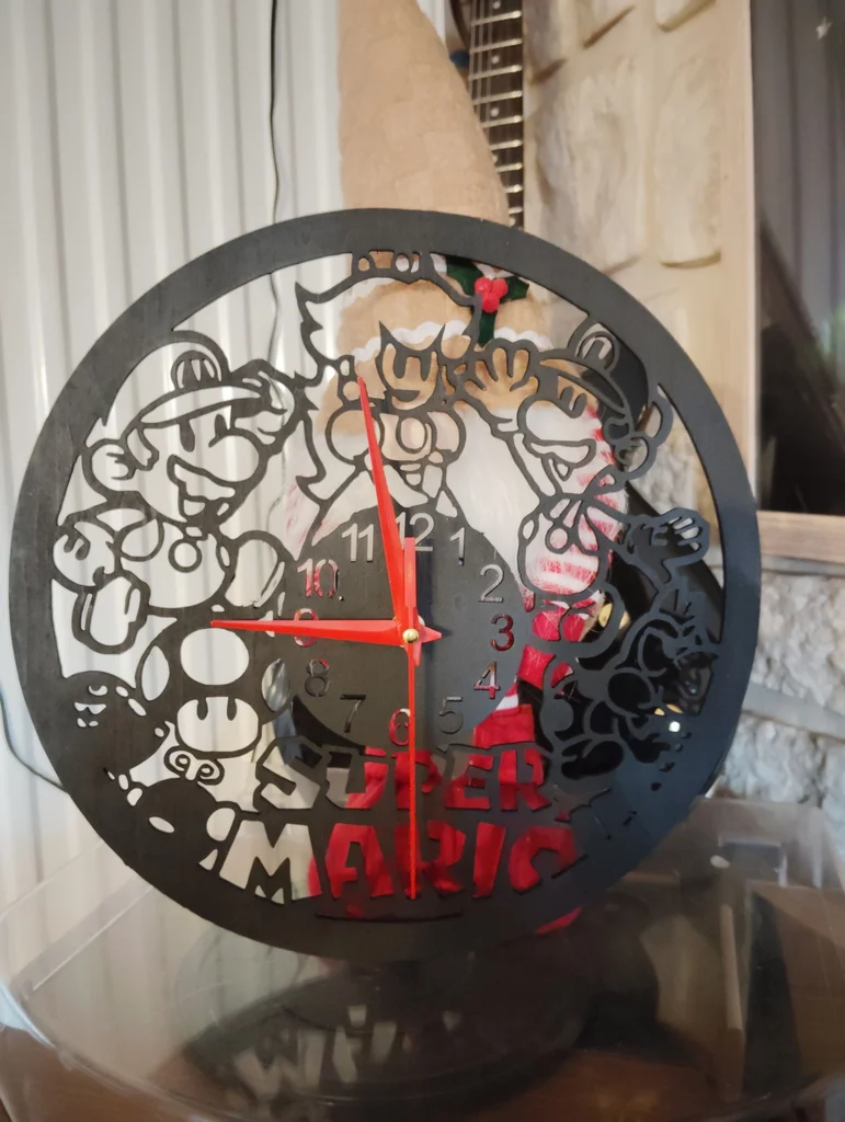 bonjour mon fils revend son horologe murale en bois super mario au prix de 20 euros etat nickel