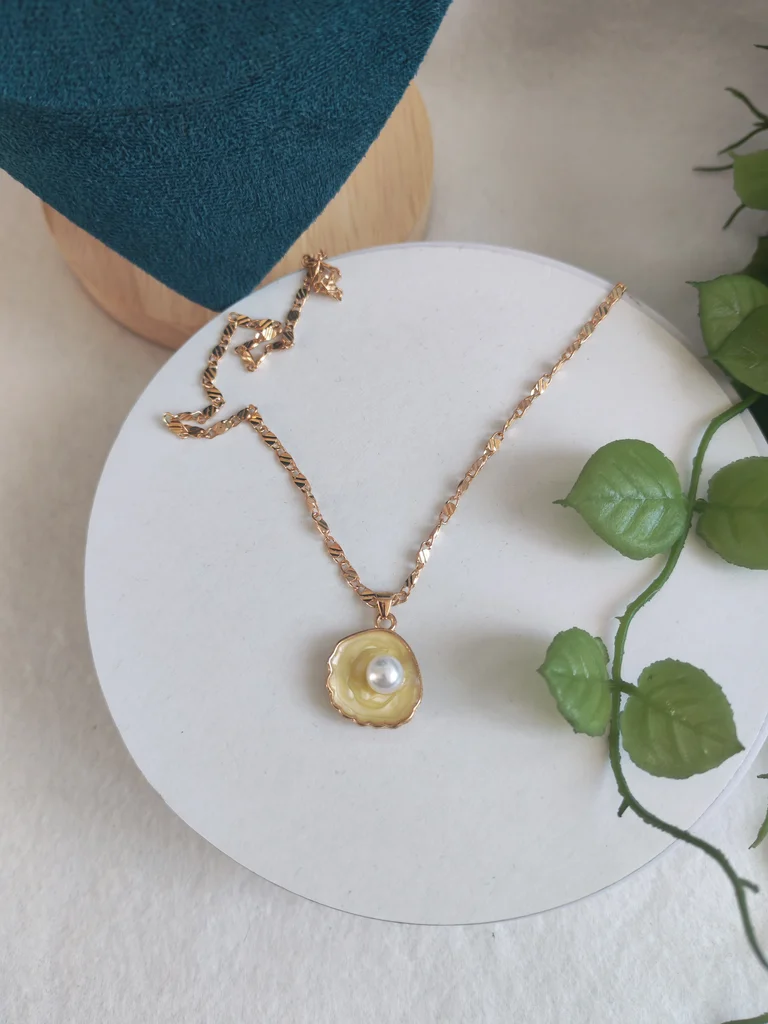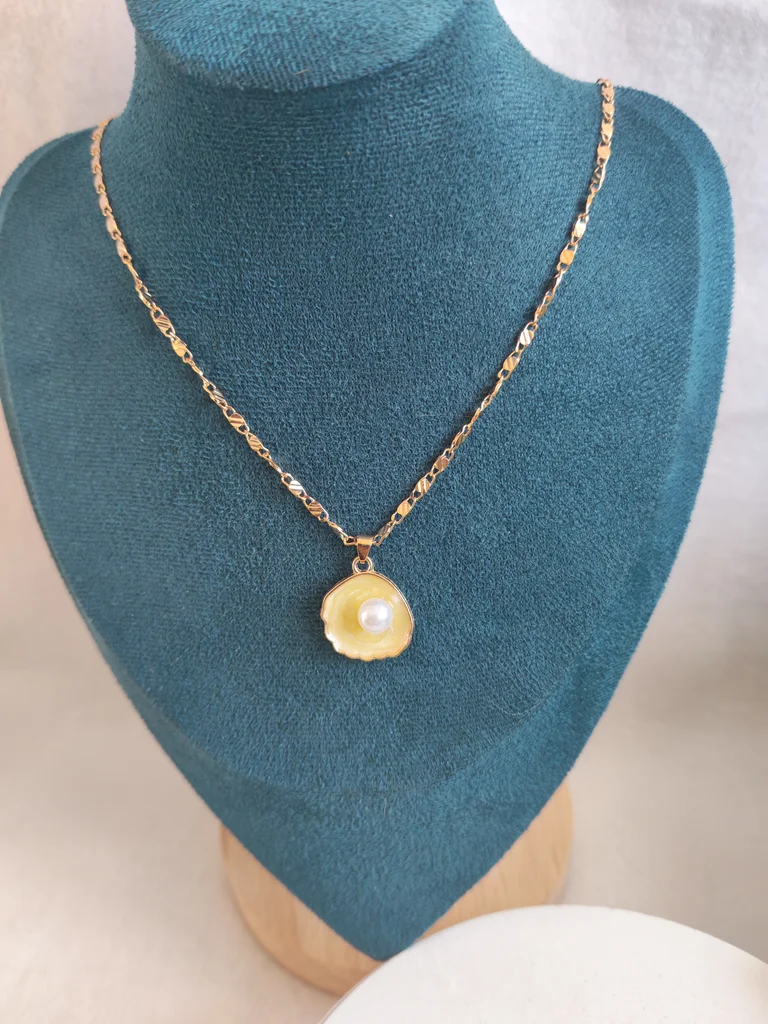 Collier femme dore et son coquillage et sa petite perle blanche Neuf jamais porté Envoi rapide et soigné Une petite attention dans chaque commande
