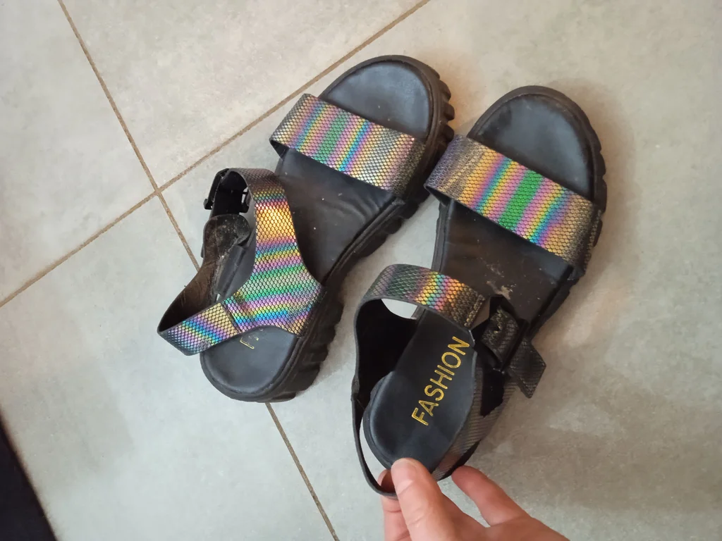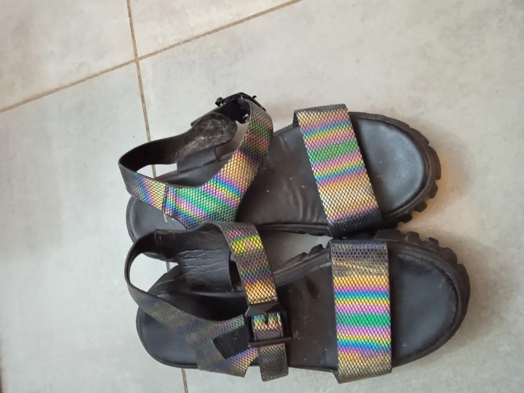 Sandales originales en très bon état couleur homologuée c ,est superbe intérieur nickel et semelle nickel crantée belles paires de sandales qui fit tout son charme et son originalité. Fashion elles sont impeccables pointure 36. Fermeture à scratch donc ajustable et pratique pour les pieds forts aussi elles s adptent bien à la forme du pied n'hésitez pas à faire des lots je suis ouverte aux prix