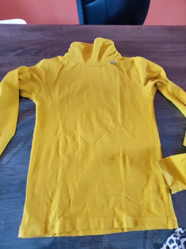 Sous pull moutarde fille – Taille 128 – JBC Très bon état juste un accroc sur bout de manches voir photo