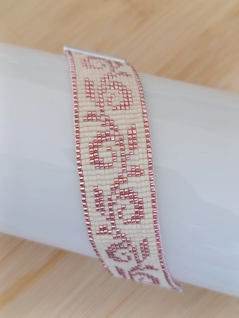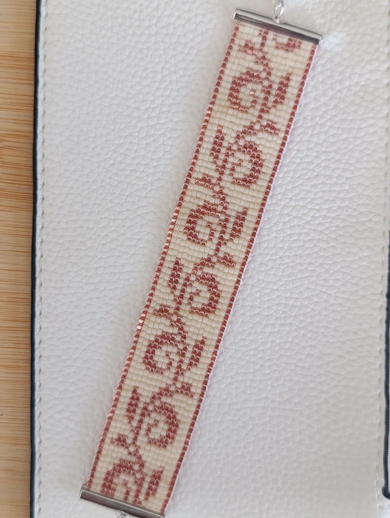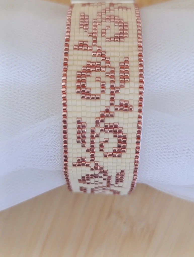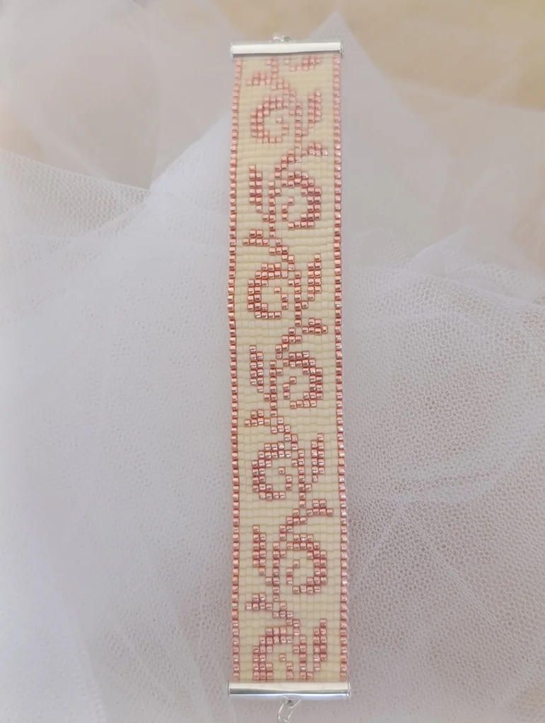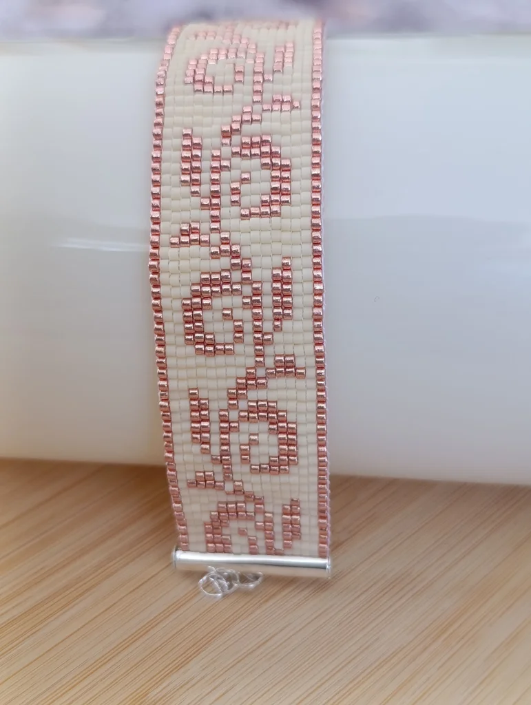 Bracelet en tissage de perles miyuki delica fait main ajustable avec sa chaînette