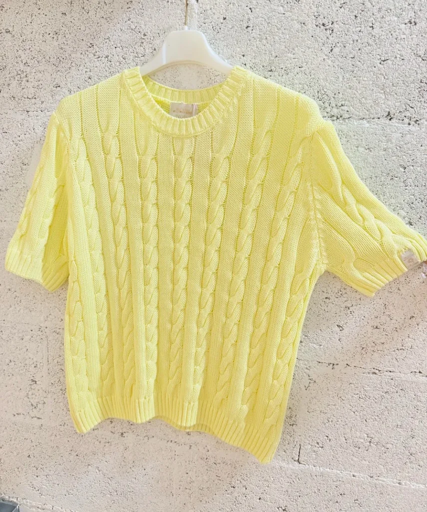 Taille unique collection printemps #pull #pullteeshirt #pullmaille #teeshirtmaille #teeshirtjaune #pulljaune #tailleunique #madeinitaly