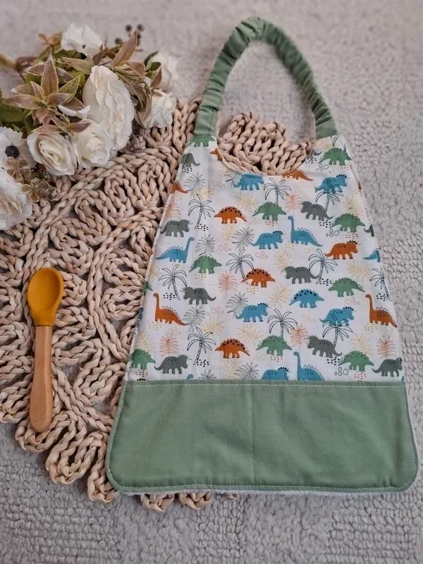 Bavoir élastique motifs dinosaures dimension du bavoir : - Environ 31 cm de hauteur sur 26 de large - Idéal pour l'école, la crèche ou la maison - composition tissus 100 % coton et éponge de bambou 40% Viscose De Bambou 40% Polyester 20% Coton - Finitions surpiqûres. - Tour de cou extensible pour un enfilage facile - Lavage en machine à 40° après un premier lavage à 30 ° - ⛔️ Pas de sèche linge ....... 1 bavoir 6€50 2 bavoirs pour 12€ 3 Bavoirs pour 16€50