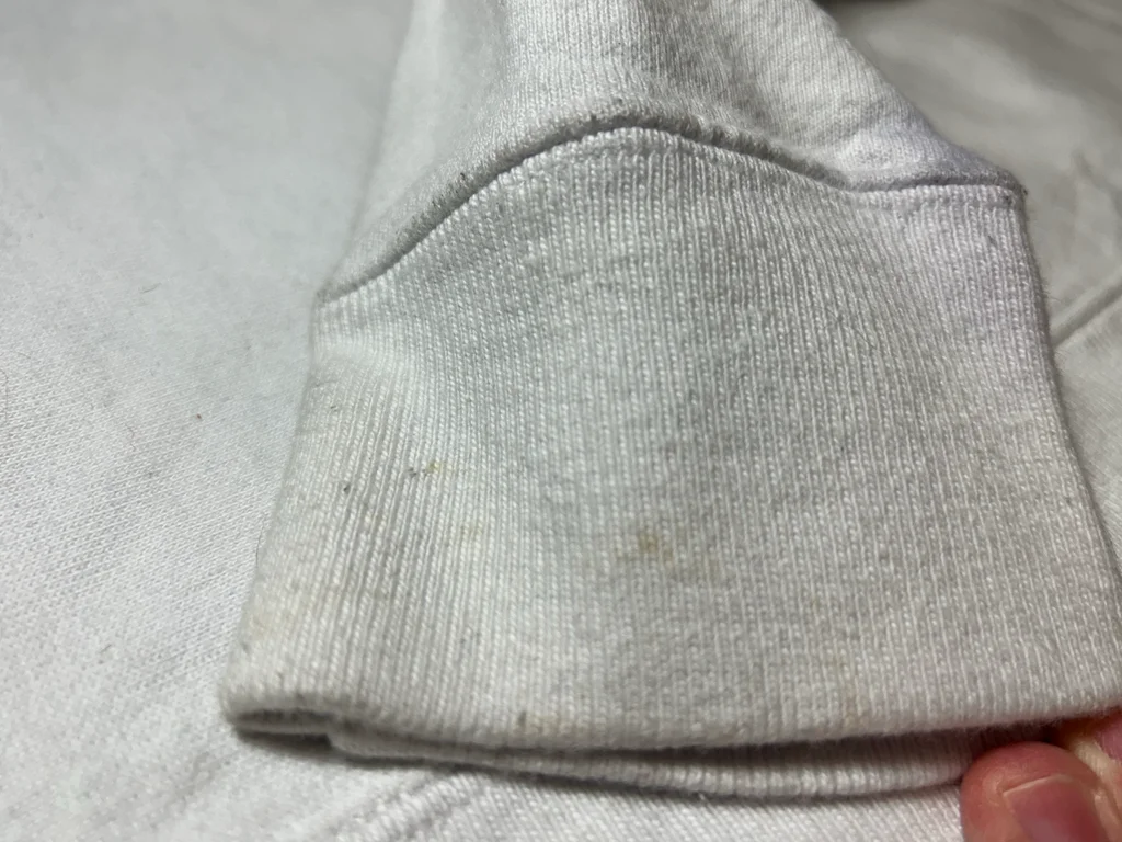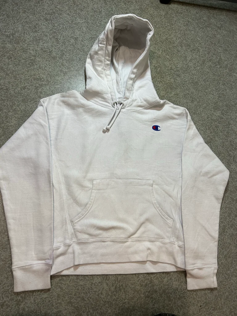 Marque : Champion (Gamme Reverse Weave - haute qualité) Taille : M (Taille normalement, convient aussi à un S pour un effet un peu plus ample) Couleur : Blanc État : État satisfaisant / Correct Détails à noter : • Modèle authentique Reverse Weave (tissage horizontal résistant). • Logo "C" brodé sur la poitrine et la manche. • À noter : Le sweat présente quelques signes d'usage (légères bouloches et quelques petites taches discrètes sur les manches et le corps, voir photos détaillées). Envoi rapide : Expédié sous 24h à 48h maximum 🚀 • État : Satisfaisant (à cause des petites taches et bouloches visibles sur les photos 8, 9 et 10) #champion #reverseweave #championvintage #hoodie #sweatcapuche #streetwear #tailleM #vintagestyle #sportswear