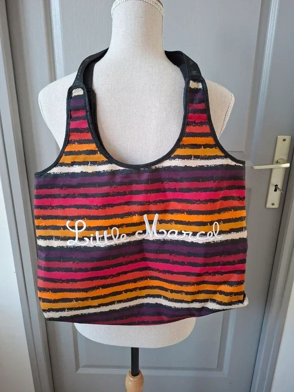 Little marcel, sac multicolore, très bon état 1 poche intérieure zippée 43 x 30 cm environ sans les anses