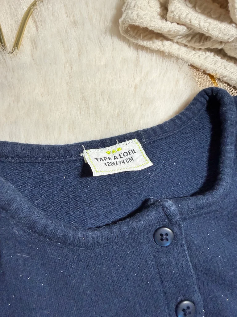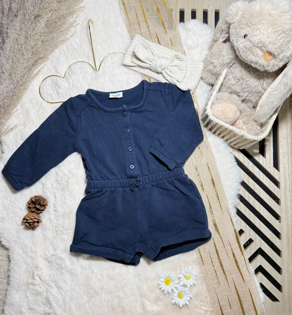 Combishort tao , à manches longues. Bleu marine pailletée ✨ 🧸 Taille 12 mois - 74cm 🧸 Très bon état
