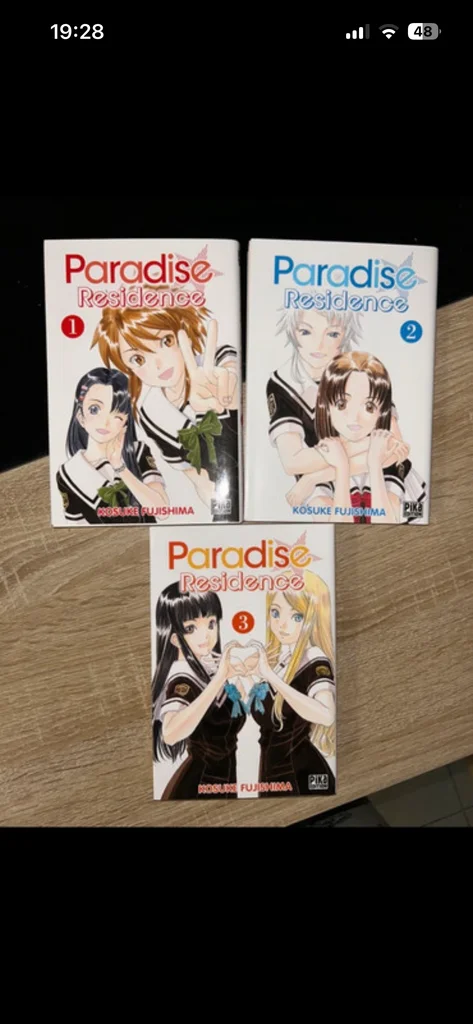 Je vends l'intégrale du manga Paradise Residence en 3 tomes. Un shojo captivant qui ravira les amateurs de mangas romantiques et pleins de charme. - Titre : Paradise Residence - Genre : Shojo - Format : Bande dessinée & manga - Quantité : 3 tomes - Auteur : Kosuke Fujishima - Éditeur : Pika - Format : Broché Très bon état N'hésitez pas à me contacter pour plus d'informations ou pour des photos supplémentaires.