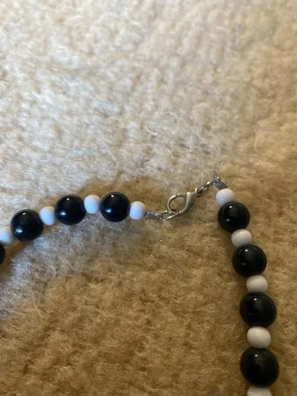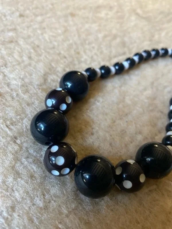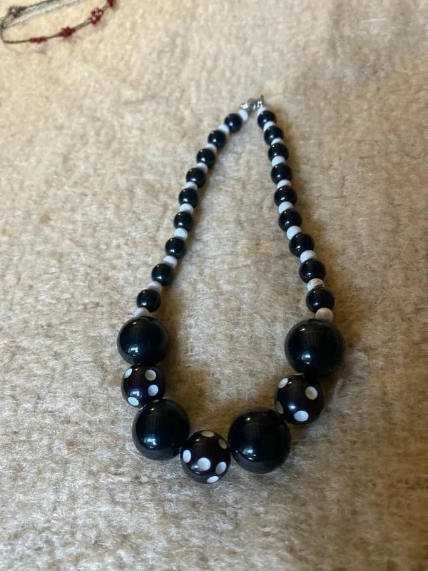 Collier atypique vintage en grosse perle noir et blanches Fraichement arrivée sur OPLA, mais très forte expérience en vente en ligne ! Négociation possible, colis bien emballé et envoyé rapidement ! Testez et faites nous part de votre avis pour bien débuter ! (un petit fav pour l'algo? <3)