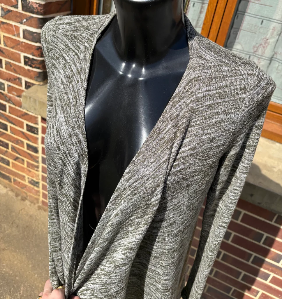 ⭐ Article en très bon état 👗 Marque : Jennyfer 📏 Taille : 36 🎨 Couleurs : Kaki et gris ♻️ Composition : 53 % polyester, 43 % viscose, 4 % élasthanne 🔸 Détails : 🌼 Coupe longue tendance et confortable ☁️ Tissu doux et extensible 🌷 Idéal pour la mi-saison ou superposé sur une tenue décontractée 🌻 Facile à assortir avec jeans ou robe 📏 Mesures (prises à plats): 📐 Épaule à épaule : 40cm 📐 Longueur totale : 75cm 📐 Longueur corps (aisselle à bas) : 60cm 📐 Largeur ouverture manche : 9cm 📐 Longueur manche (épaule au poignet) : 63cm 📐 Longueur manche (aisselle au poignet) : 43cm