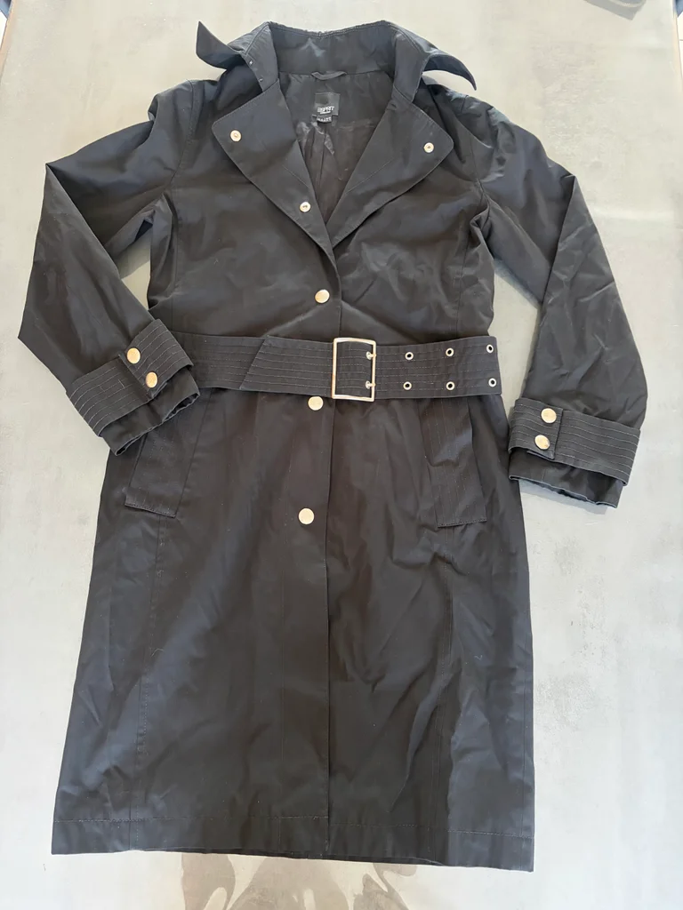 Je vends ce magnifique trench-coat noir de la marque Esprit Collection. Un basique indispensable, avec une coupe cintrée très élégante et des détails soignés qui font toute la différence. Détails de l’article : • Marque : Esprit Collection • Taille : 40 • Couleur : Noir • Coupe : Longue, ajustée par une ceinture large à boucle métallique pour souligner la taille. • Finitions : Grands boutons pression argentés, détails de surpiqûres sur les poignets et la ceinture, col montant avec attaches métalliques. État de la pièce : • Bon état général. Le tissu est de belle qualité et la tenue est impeccable. • ⚠️ À noter : Présence d’un seul léger défaut, mais reste très discret une fois porté. Voir les deux dernières photos. Un classique idéal pour la mi-saison, que ce soit pour une tenue de bureau ou un look plus décontracté. #trench #esprit #espritcollection #trenchcoat #manteaufemme #chic #parisienne #lookautomne #trench40 #modefemme #blacktrench #basique