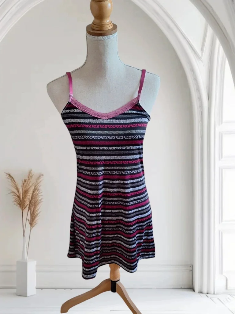 🩷 Très jolie nuisette fines bretelles réglables à rayures 🩷