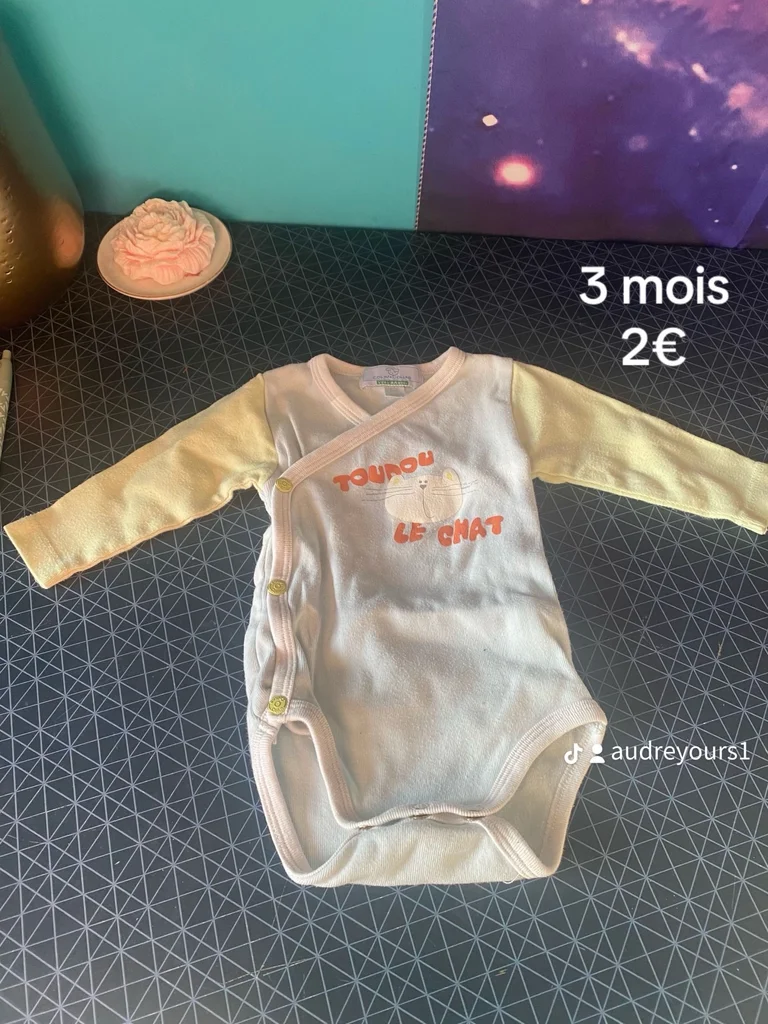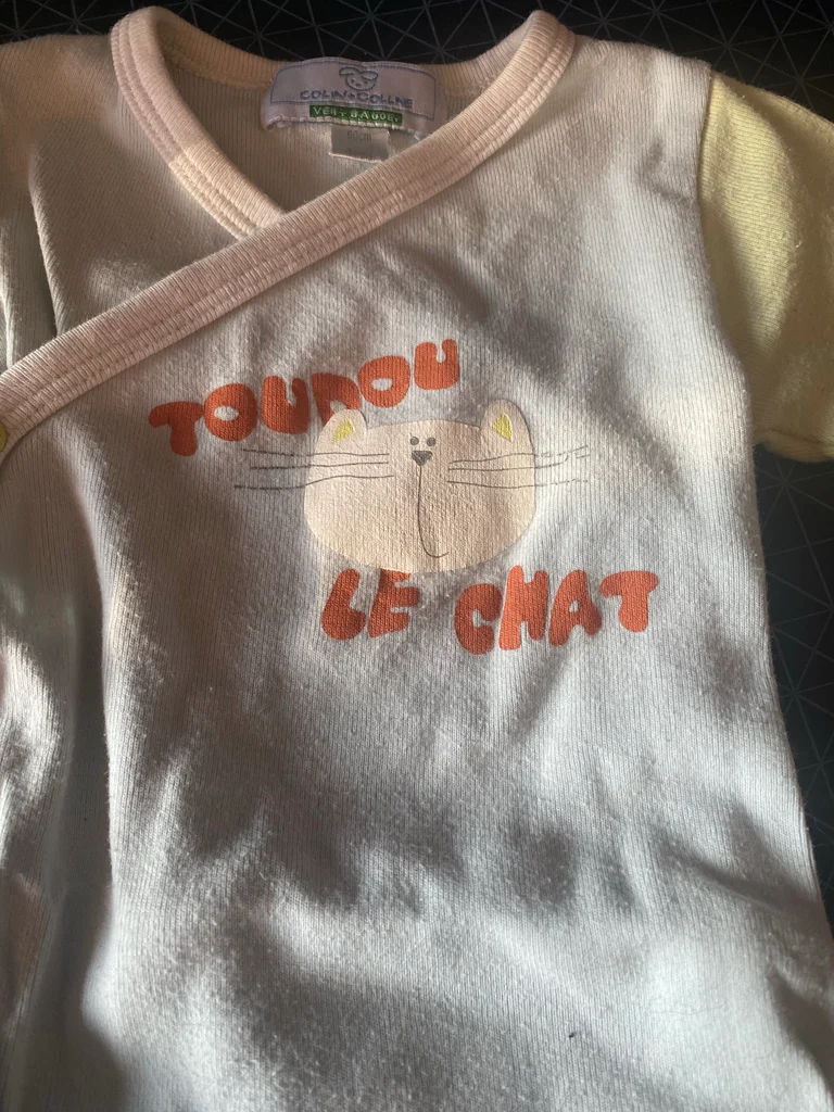 Body bébé Colin Coline – 3 mois – Charme & douceur raffinée ✨ Craquez pour ce ravissant body Colin Coline, une pièce pleine de douceur et de poésie pour les tout-petits 👶💛 Son design croisé, à la fois pratique et délicat, sublime la silhouette de bébé tout en facilitant l’habillage. Les manches contrastées et le joli motif “Tounou le chat” apportent une touche originale et pleine de tendresse. ✔️ Taille : 3 mois ✔️ Marque : Colin Coline ✔️ Matière douce, agréable pour la peau de bébé ✔️ Ouverture croisée avec pressions pour un enfilage facile ✔️ Finitions soignées ➡️ Très bon état général, prêt pour une nouvelle vie