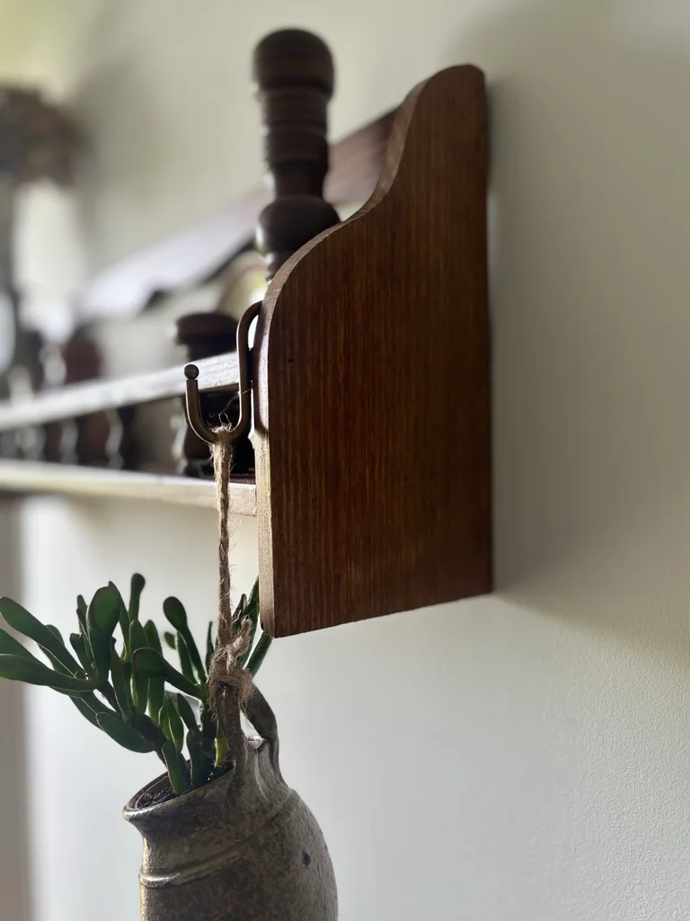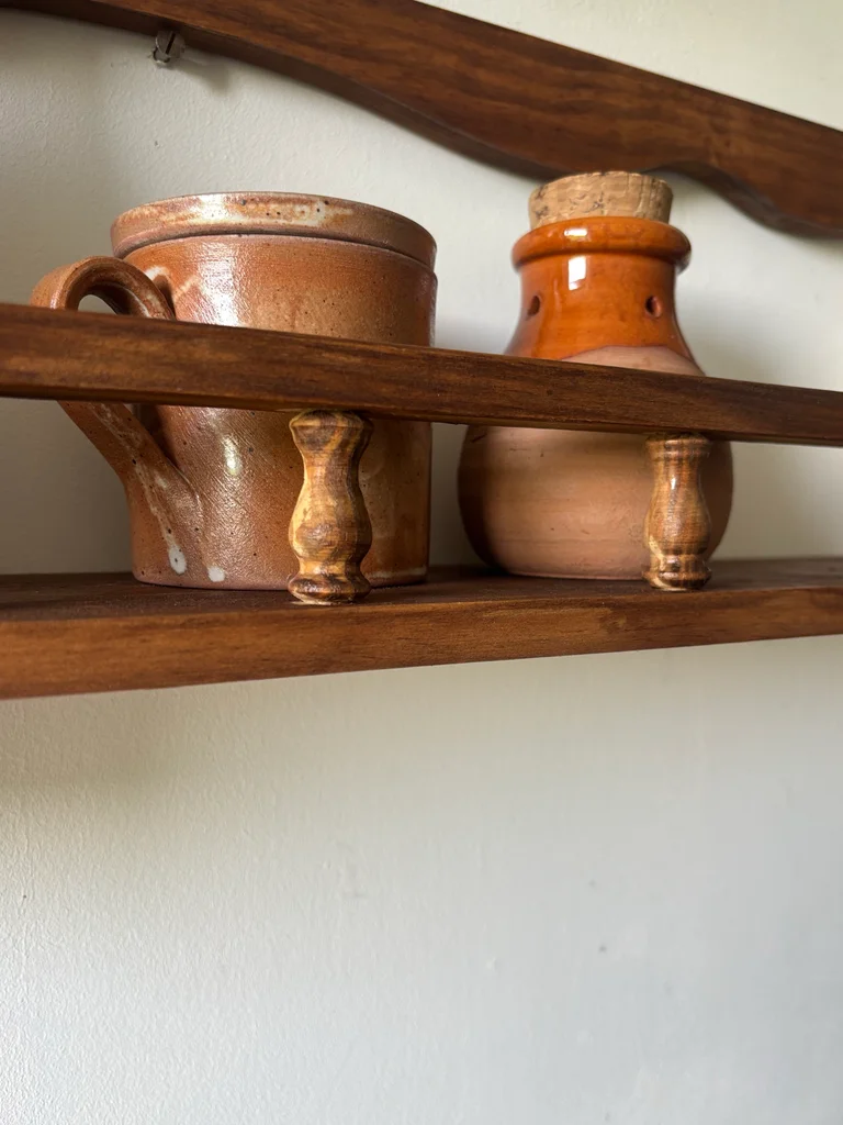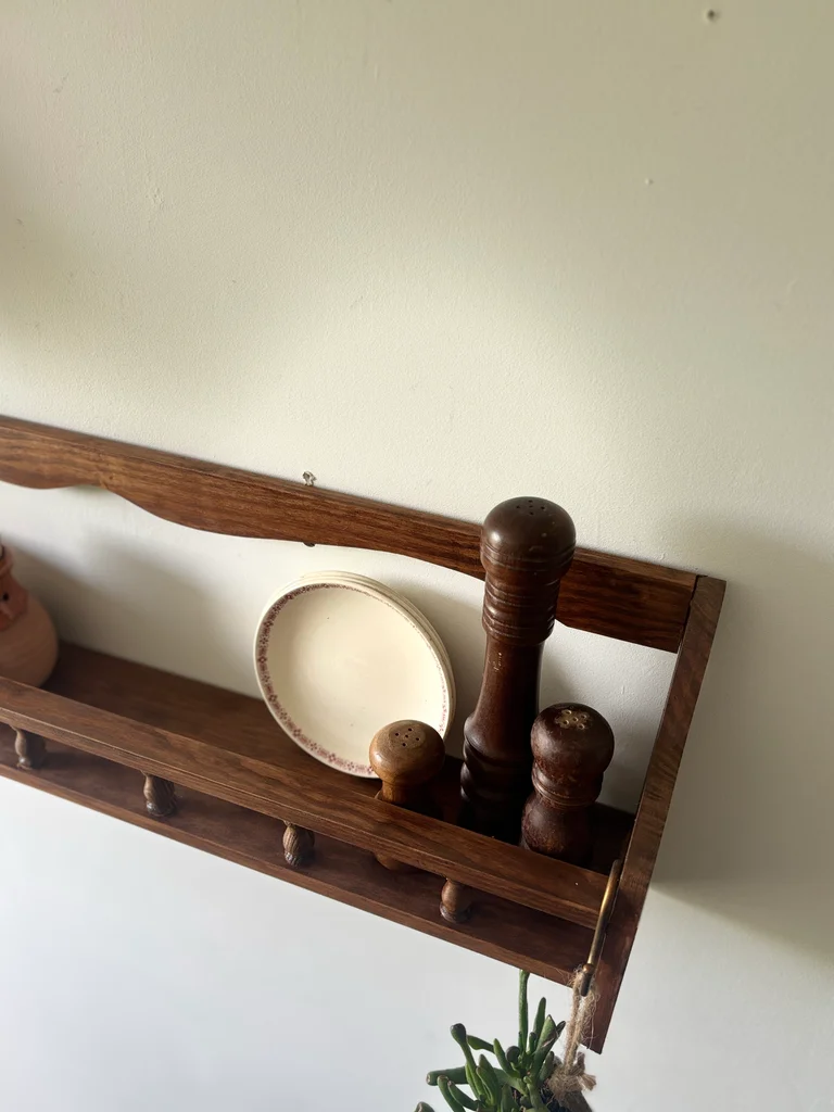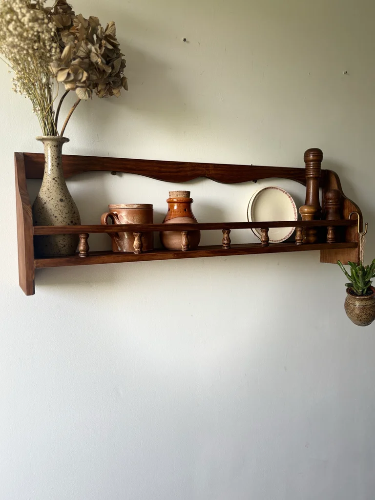 Apportez une touche authentique et chaleureuse à votre intérieur avec cette jolie étagère murale en bois. Son design simple et élégant, avec ses petites balustres, en fait une pièce idéale pour une déco cuisine, salon ou entrée f Parfaite pour exposer vos jolis objets, pots, fleurs séchées ou vaisselle ancienne * Travail important réalisé : • Entièrement poncée à la main • Peinte avec soin • Vernie pour une finition durable et protéger le bois • Peut être posée ou accrochée (système d'accroche fonctionnel) À noter : Un petit accident discret (voir photos), sans impact sur son utilisation - cela ne lui enlève rien de son charme et de son authenticité Dimensions : • Largeur : 77 cm • Hauteur : 24 cm • Profondeur : environ 12 cm Idéale pour une déco maison de campagne, bohème ou vintage