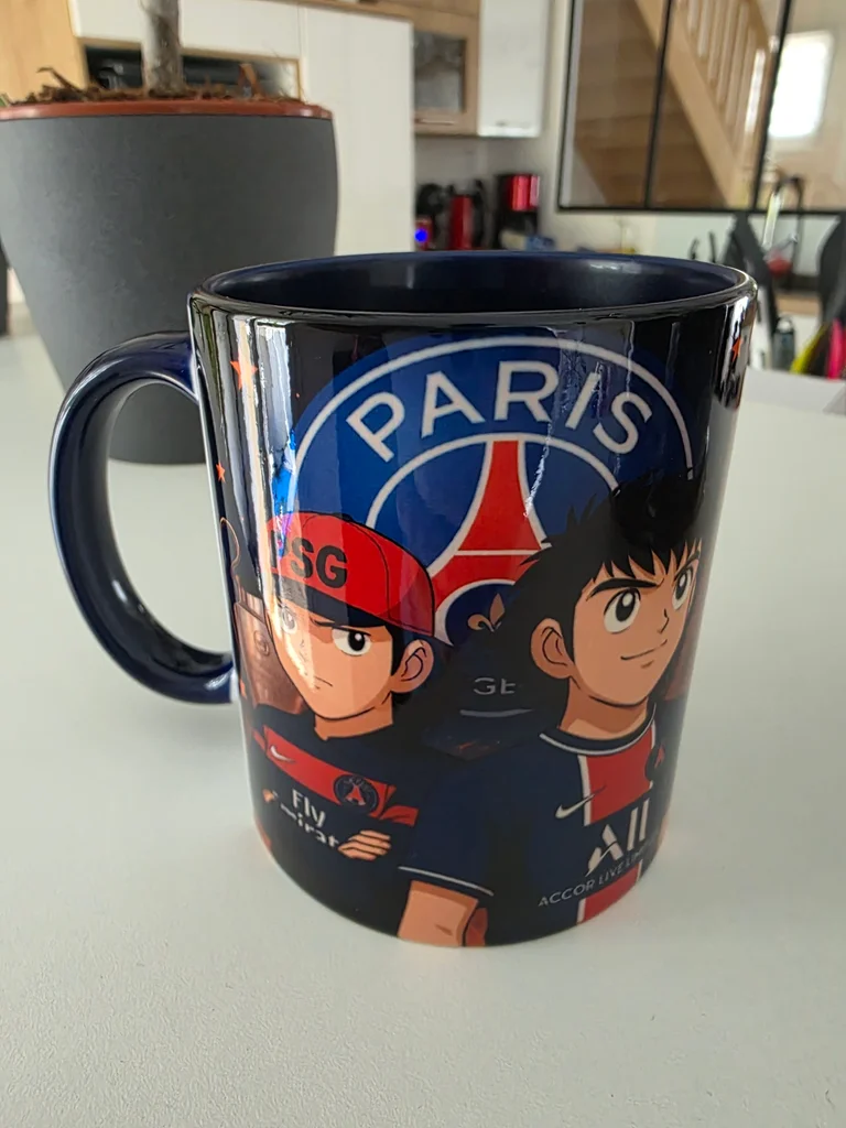 Avis aux supporters du Paris Saint-Germain et aux fans de l'animé culte Olive et Tom ! Je vends ce mug exclusif et original combinant l'univers du PSG et les personnages légendaires de Captain Tsubasa. Un objet parfait pour le petit-déjeuner ou pour décorer votre bureau aux couleurs de la capitale ! État : Neuf (jamais utilisé, aucune rayure ni éclat). Design : Illustration haute qualité représentant les personnages iconiques sous le maillot parisien, avec le logo officiel du PSG en arrière-plan. Couleur : Intérieur et anse bleu marine élégant. Détails : Finition brillante, impression nette et résistante. C'est le cadeau idéal pour un collectionneur ou un jeune fan de foot qui veut commencer la journée comme un champion. 🏆 🚚 Envoi rapide et soigné : Le mug sera emballé avec une protection maximale pour arriver chez vous en parfait état. N'hésitez pas à me contacter pour plus d'informations !