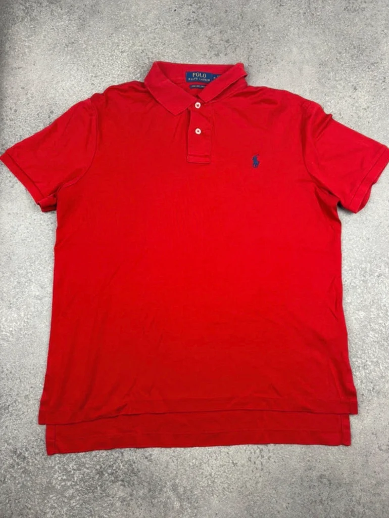 Polo Ralph Lauren original. Couleur rouge intense avec logo bleu. Matière Pima Soft Touch (confort premium). La matière est ultra douce Coupe classique élégante. Très bon état général comme neuf! ✅ Envoi sous 24/48h ✅ Dimensions largeur 52cm longueur 64cm