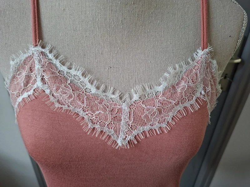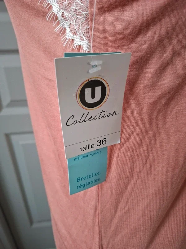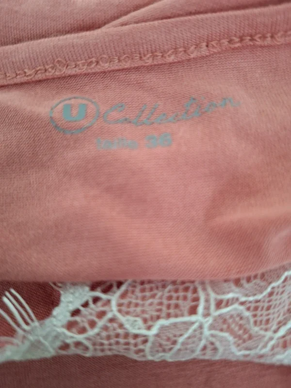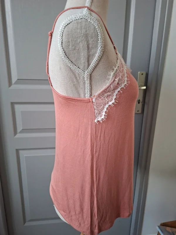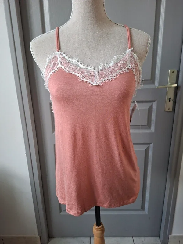 U collection, top, neuf Jolie couleur corail, dentelle Bretelles réglables Viscose et élasthanne T 36