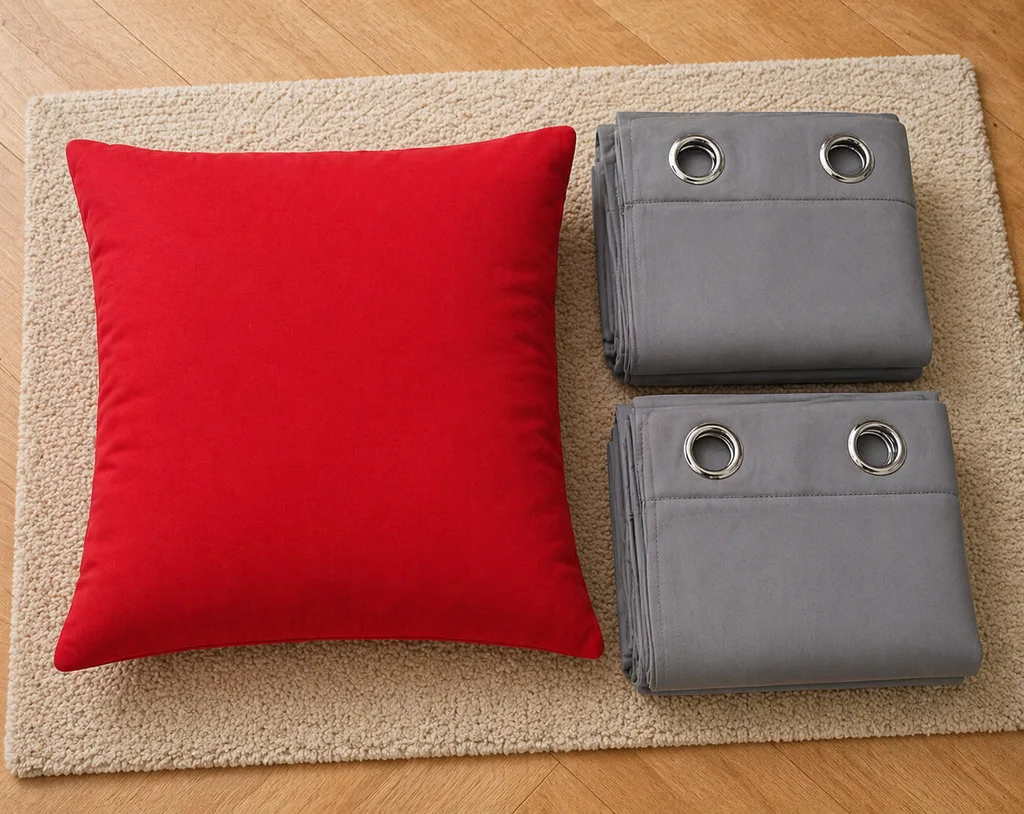 Lot de 2 coussins rouge 60 × 60 cm et paire de rideaux gris clair thermique et occultant 140 × 250 cm Avec ce rideau vous profitez d'une solution esthétique et efficace pour décorer votre intérieur, isoler votre intérieur du froid et de la chaleur et bloquer la lumière. Rideau été / hiver. - 2 coussins rouge 100 % polyester - 2 rideaux gris thermique et occultant 100 % polyester Valeur réelle du rideau ~ 90 euros Excellent état ! Idéal pour décoration salon ou chambre. Envoi rapide et soigné