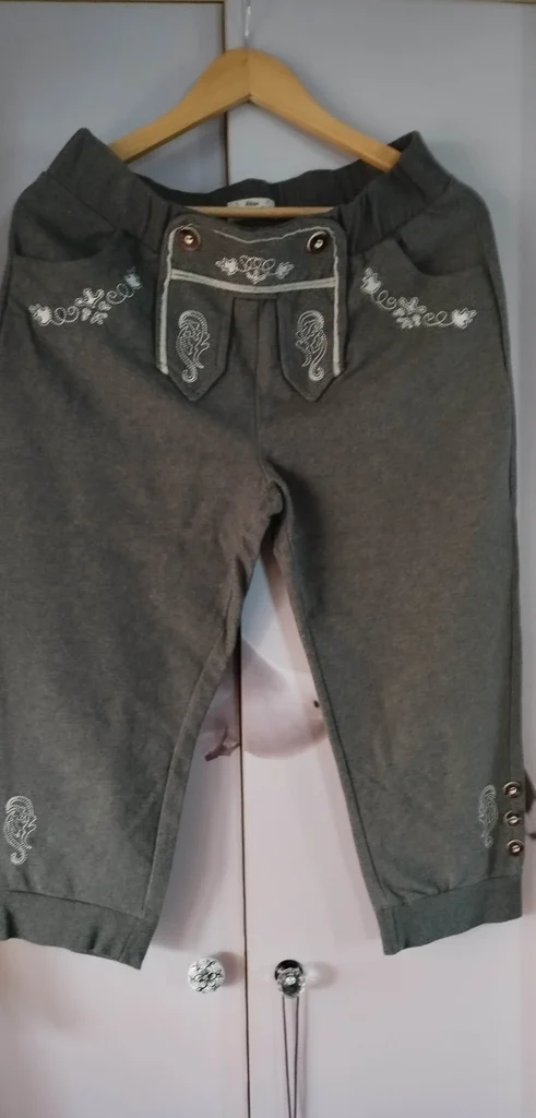 pantacourt "fête de la biere", tissus epais style sweat , portée 1x pour la Fête de la biere à Stuttgart , taille 42, taille elastique, 40 cm non etiré À plat, EJ 52 cm marque Wiesn'Spatzl