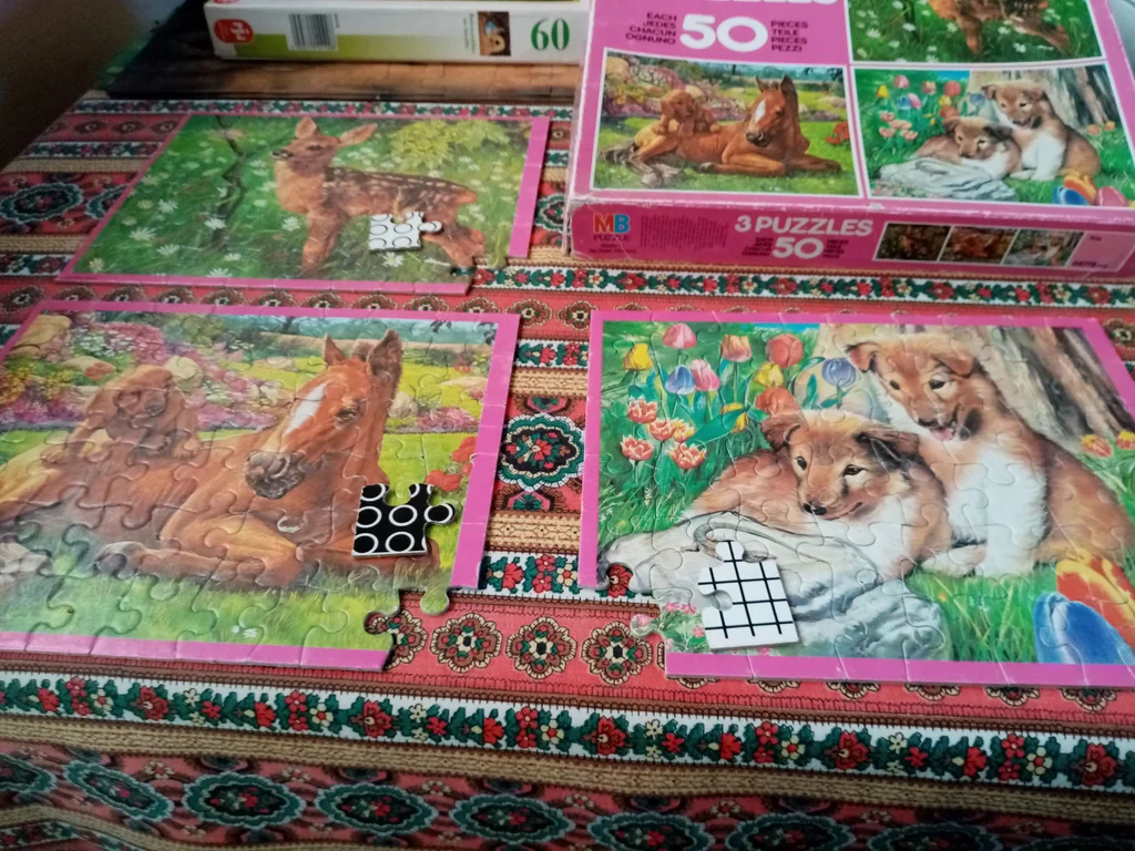 Un lot de 3 puzzles dans 1 boîte plus 4 puzzles enfant
