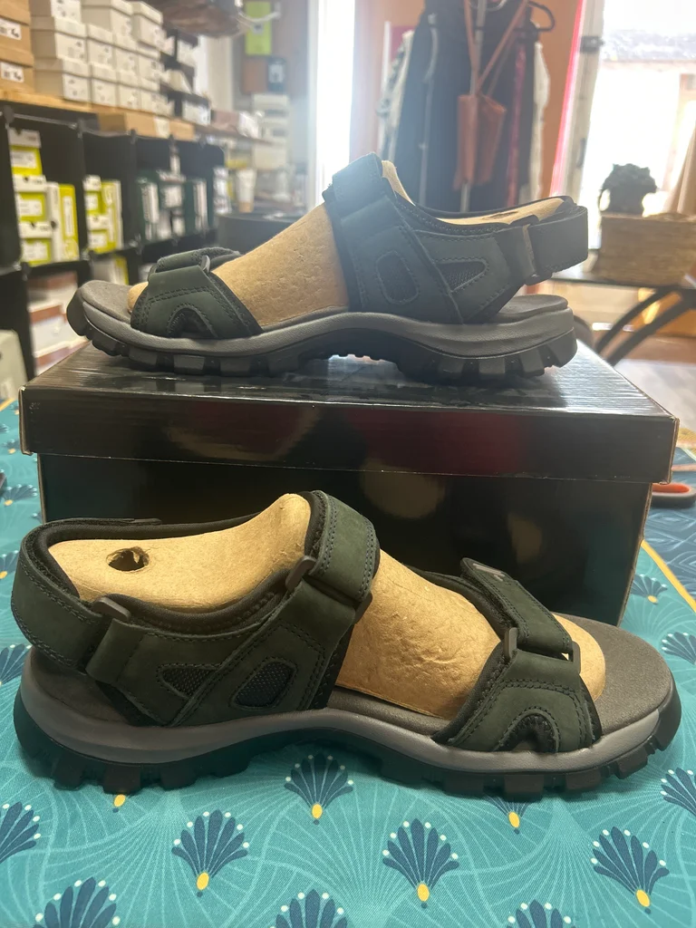 Sandales en nubuck vert foncé 3 scratch pour un meilleur maintien du pied Légères Pointure 44 Neuves