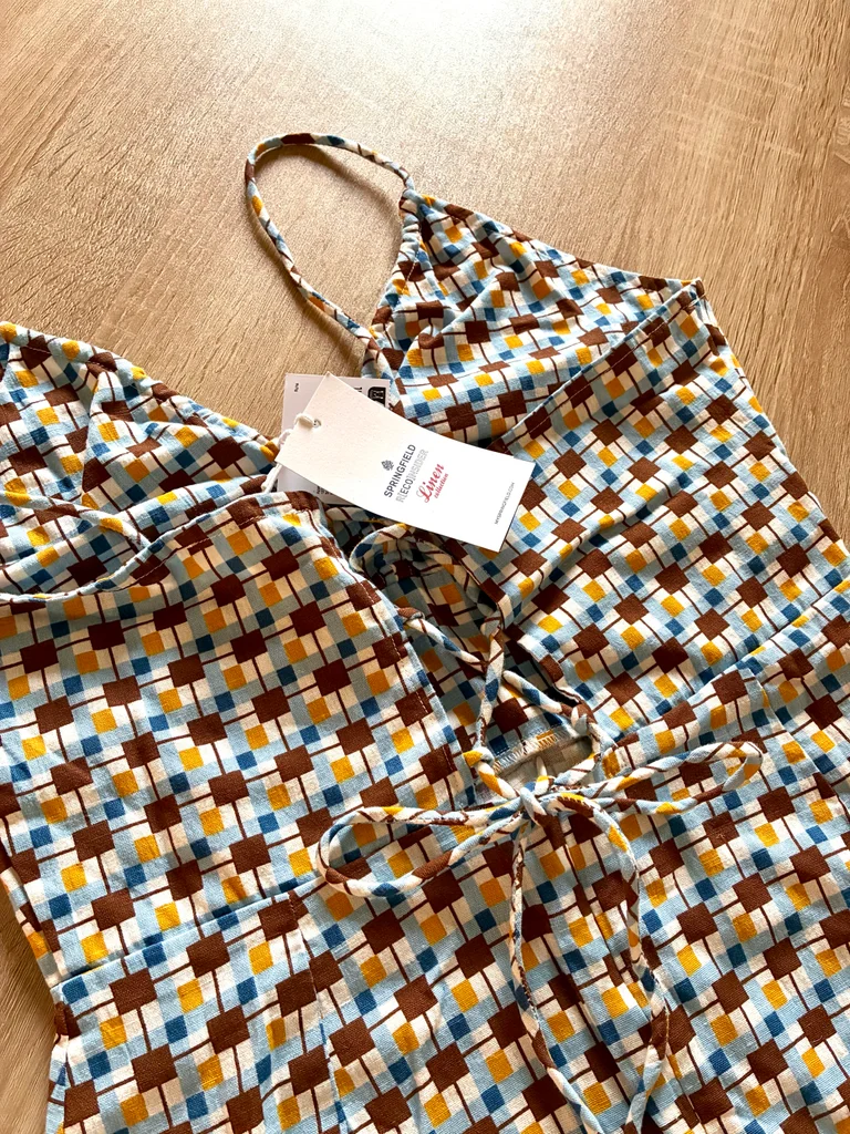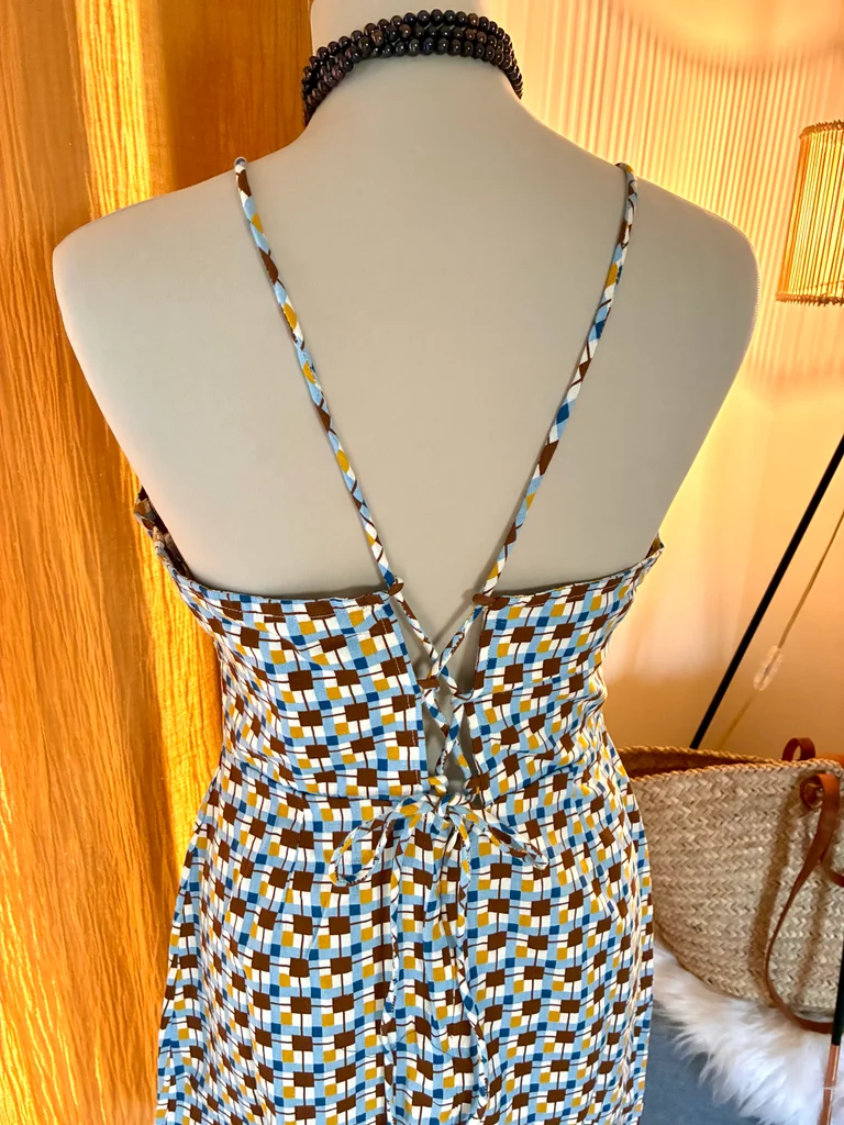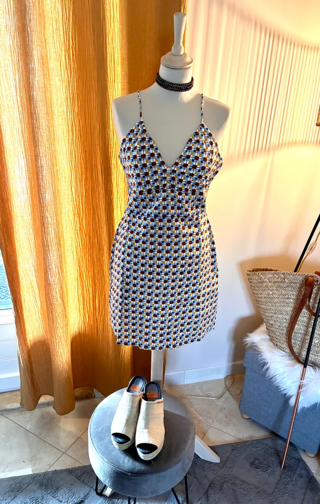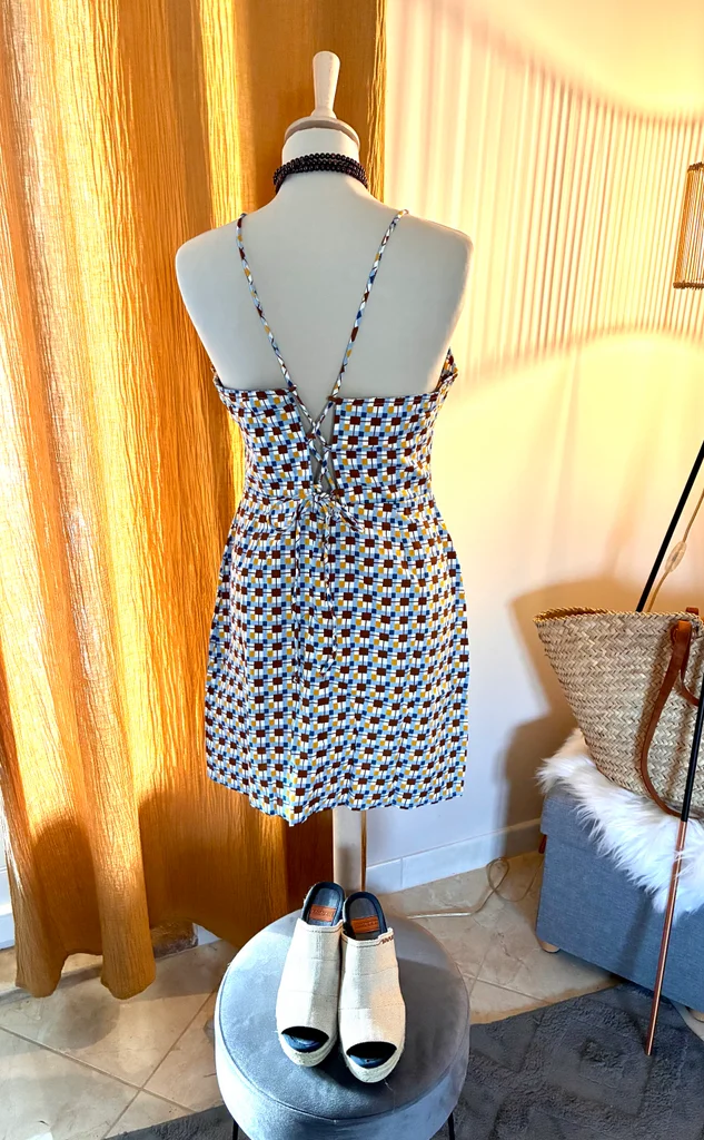 ☀️ Robe Springfield Dos Nu (Neuve) – Coton & Lin L’indispensable de votre été. Issue de la gamme éco-responsable Reconsider, cette robe courte Springfield allie chic rétro et confort absolu. ✨ Pourquoi elle va vous faire craquer : • Dos Nu Wahou : Un laçage croisé magnifique et entièrement ajustable. Il permet de cintrer la taille sur mesure et d'assurer un maintien parfait de la poitrine. • Matière Premium : Un mélange noble (85% Coton / 15% Lin) qui laisse respirer la peau. Ultra légère et fluide, même en pleine canicule. • Style Rétro-Chic : Imprimé mosaïque géométrique aux tons chauds (Terre de Sienne, Ocre) relevé par une touche de bleu ciel. • Composition : 85% Coton, 15% Lin (Label Better Cotton) • État : ✨ Neuve avec étiquette (Jamais portée) • Détails : Décolleté V plongeant, fines bretelles réglables via le laçage dos. 💡 Conseil Look Opla : Elle est faite pour être portée avec des sandales en cuir naturel ou des espadrilles. Ajoutez un panier en osier et vous avez le look bo [Description tronquée]