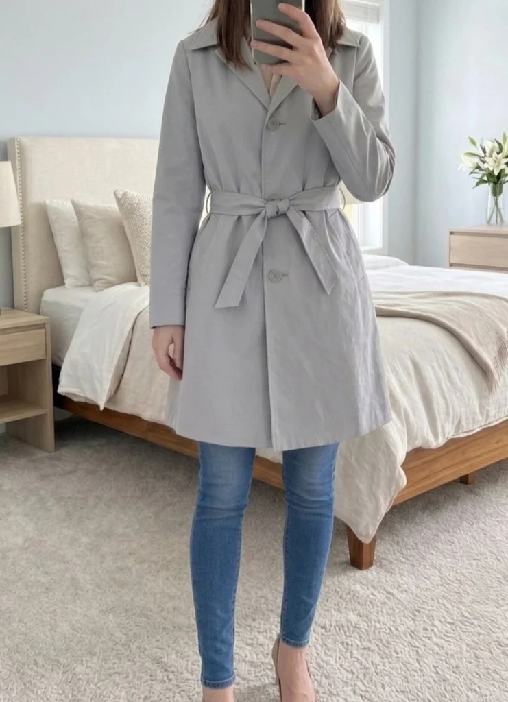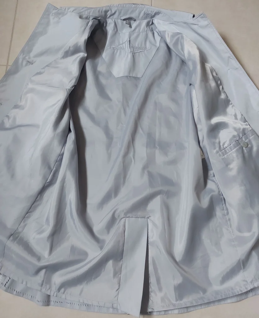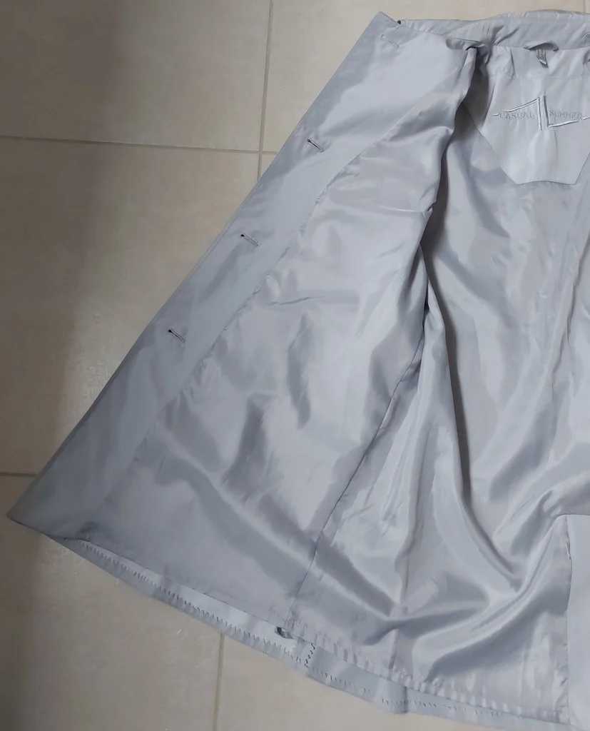 🌿 Merci de bien lire le descriptif dans son entièreté et regarder chaque photos. ✨️ Trench coat en très bon état avec ceinture et doublure, juste une petite tâche à l arrière d une des manches (retroussables). Située sur la partie retroussable, je ne suis parvenue à la faire partir, mais rien de bien méchant (voir dernière photo). Je précise tout de même "bon état" par rapport à la tâche. ✨️ Taille F: 40/L. ✨️ Mesures: Épaule à épaule: ≃ 42 cm. Aisselle à aisselle: ≃ 57 cm. Longueur: ≃ 89 cm. ✨️ Couleur: gris clair.