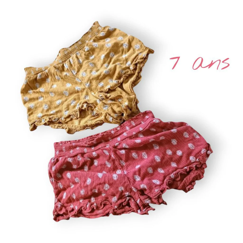 🌈 Trop mignons et parfaits pour l’été ☀️ 💎 En super état (très peu portés) 🧵 Petit détail : l’étiquette d’un short a été retirée car elle grattait 👉 aucun impact, confort au top 👌 🏷️ Marque : Kiabi 📏 Taille : 7 ans (coupe idéale pour bouger & jouer 🏃♀️) 🎨 Couleurs fun & faciles à assortir : ocre, rouge & blanc ❤️🤍 📦 Envoi rapide & soigné 💌 ✨ Prêts à faire craquer une nouvelle mini fashionista ! 👗 N’hésite pas à jeter un œil à mon dressing, j’ai plein d’autres pépites à petits prix 💕