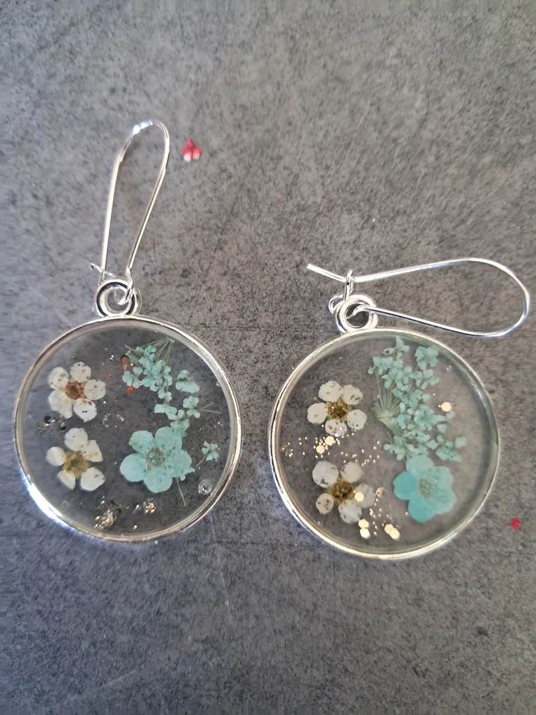 Boucle d oreille en résine et fleurs naturelles Diamètre 2,5